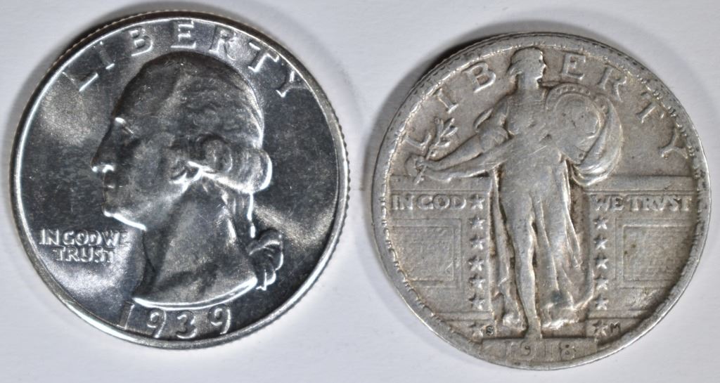 1918-S STANDING LIBERTY XF & 1939 WASHINGTON GEM BU. ESTIMATE $90 - $110.