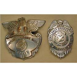 LOT OF 2 RARE WW2 US ARMY BADGES SUNFLOWER ORDNANCE WORKS GUARD NO. 39