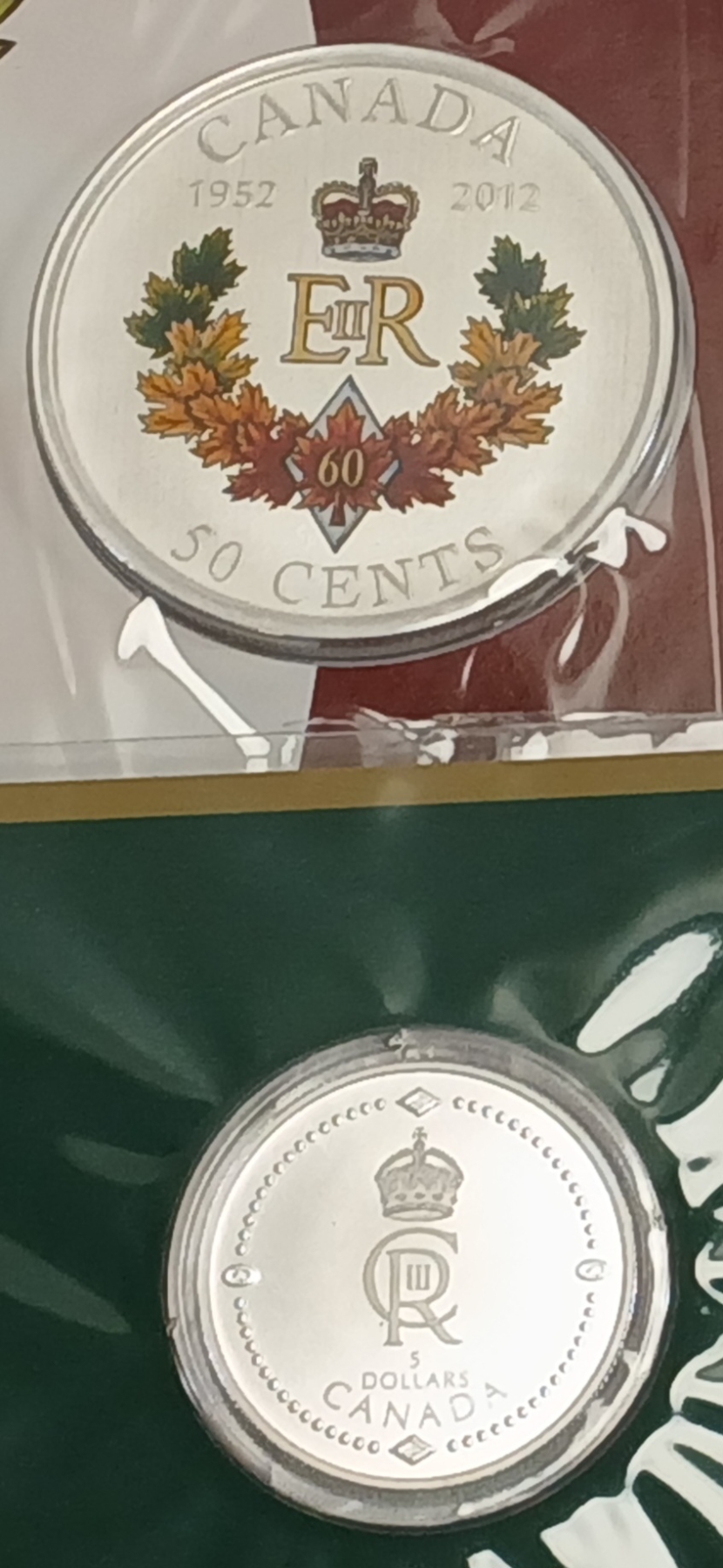 LOT OF 2 - RCM 2012 & 2022 QUEEN ELIZABETH & KING CHARLES 50 CENT & 5 DOLLAR COINS