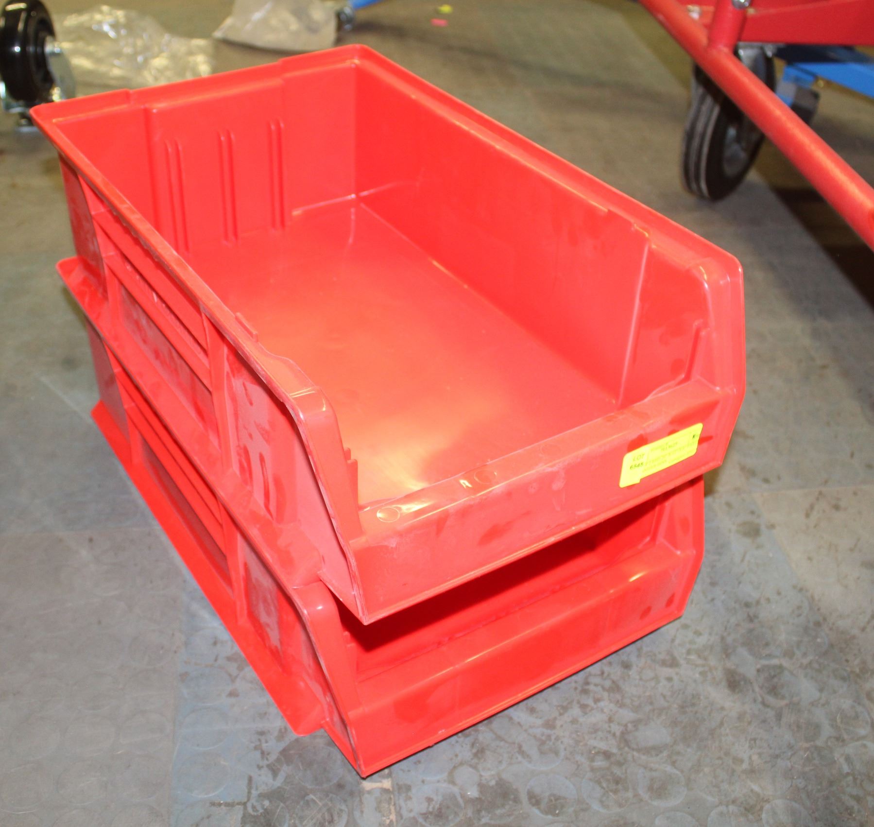 LOT OF 2 RED 20" X 12" X 6" PARTS ORGANIZER BINS