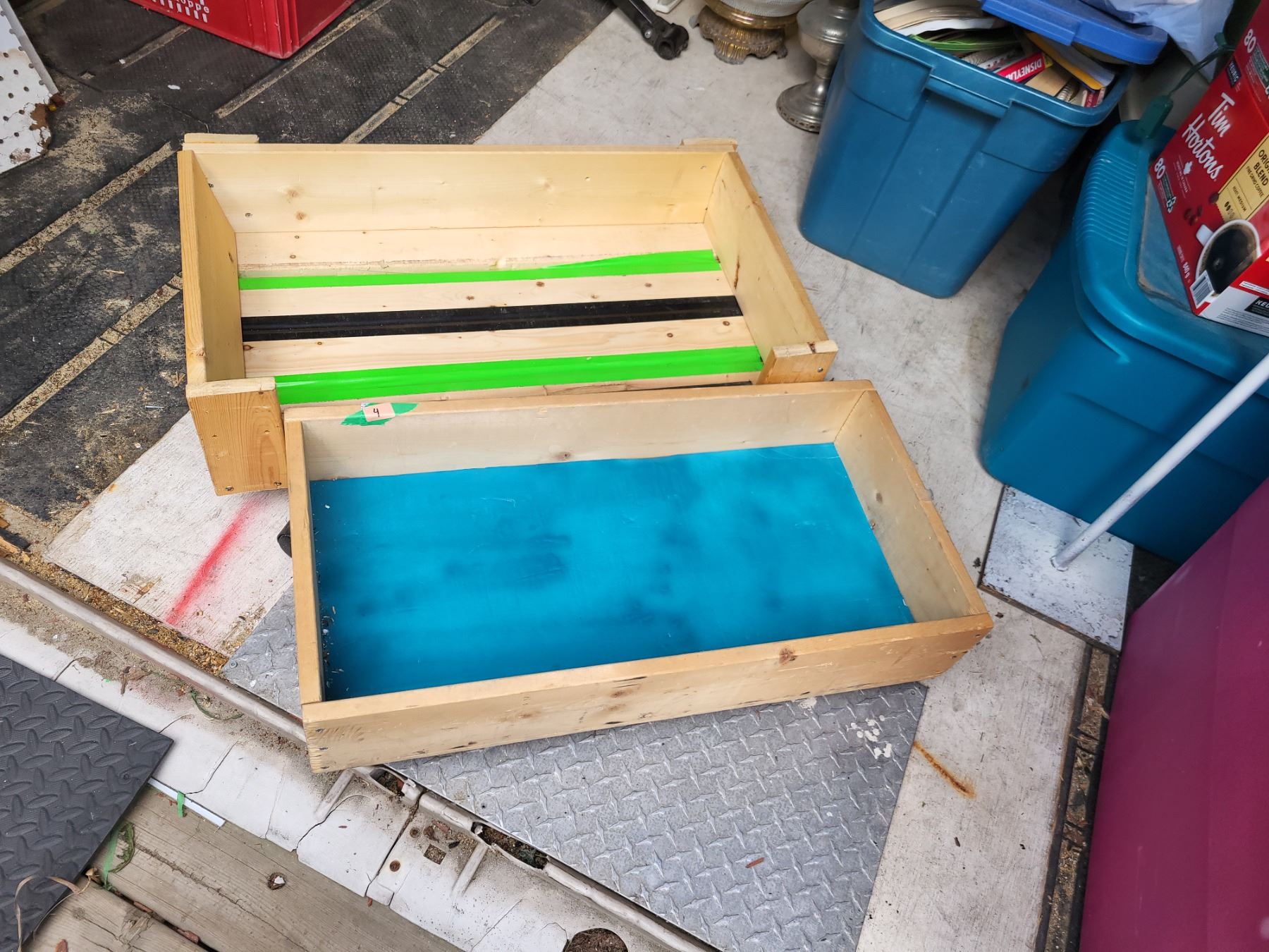 MEASURES 29" X 14.5" (BLUE BOTTOM); 30.5" X 17.5"