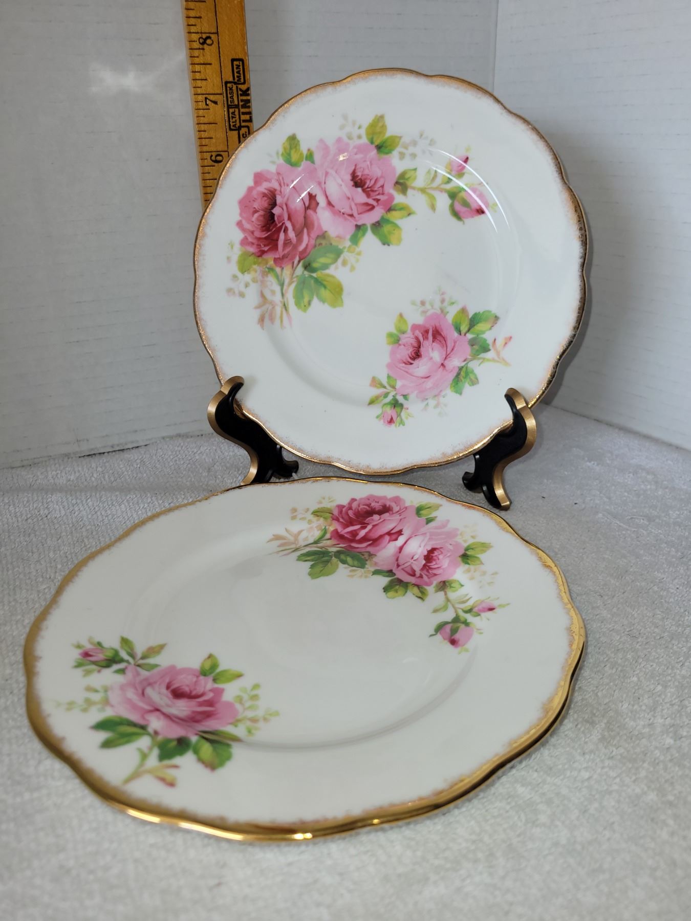 LOT OF 2 ROYAL ALBERT AMERICAN BEAUTY BREAD & BUTTER PLATES LOT 2. MEASURES 7.25"
