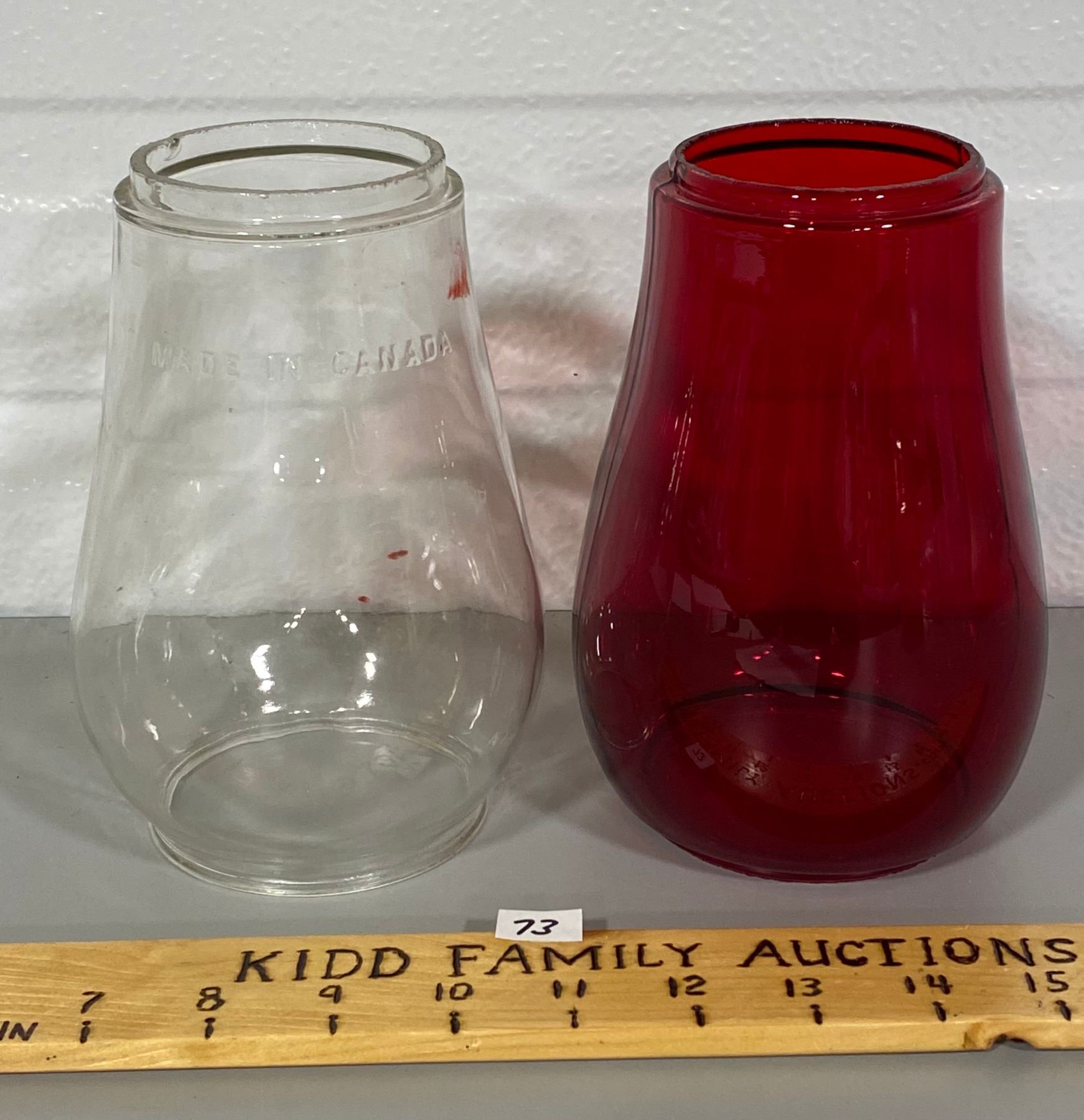 LOT OF 2 - RUBY & CLEAR GLASS LANTERN GLOBES