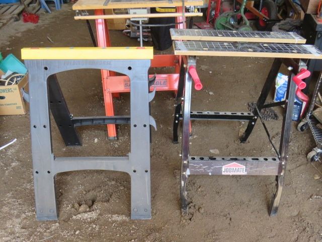 LOT OF 2 SAW HORSES (1 X PLASTIC, 1 X METAL)