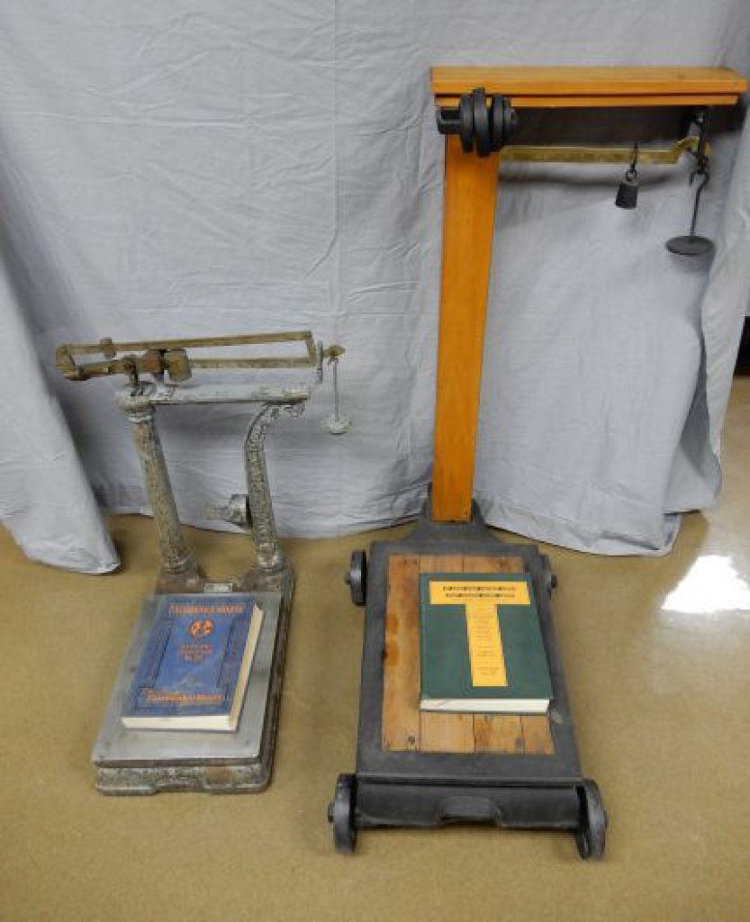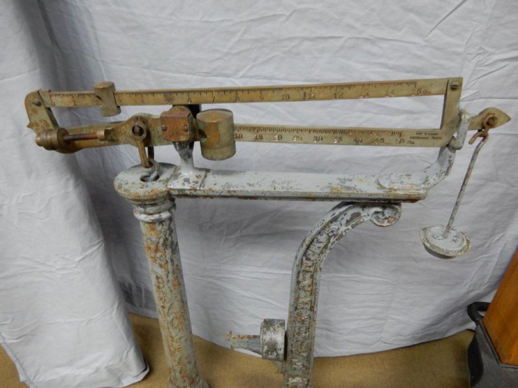 FAIRBANKS MORRIS -BRASS & CAST - ORIGINAL WITH WEIGHTS - PEDESTAL GRAIN BAG SCALE - FAIRBANKS MORRIS CATALOGUE #36 - GEORGE TAYLOR CAT. # 53