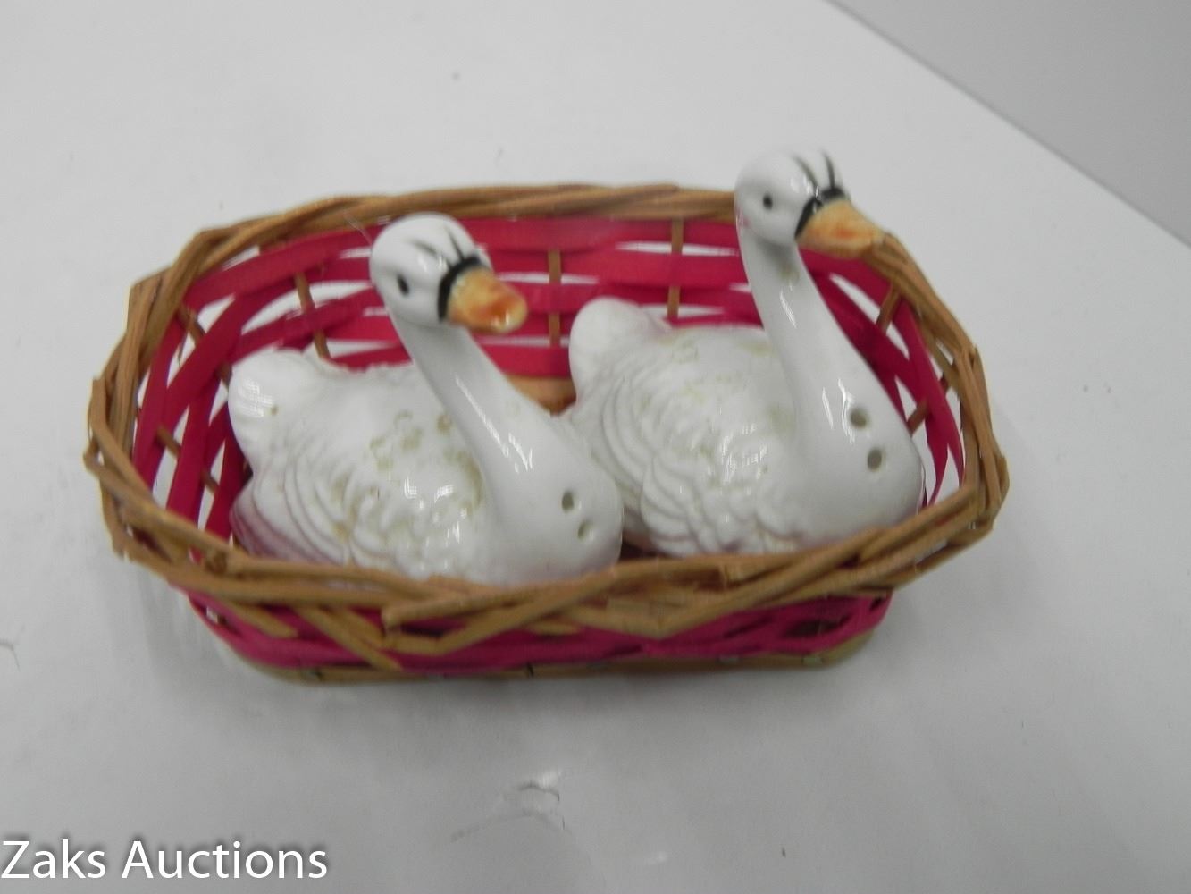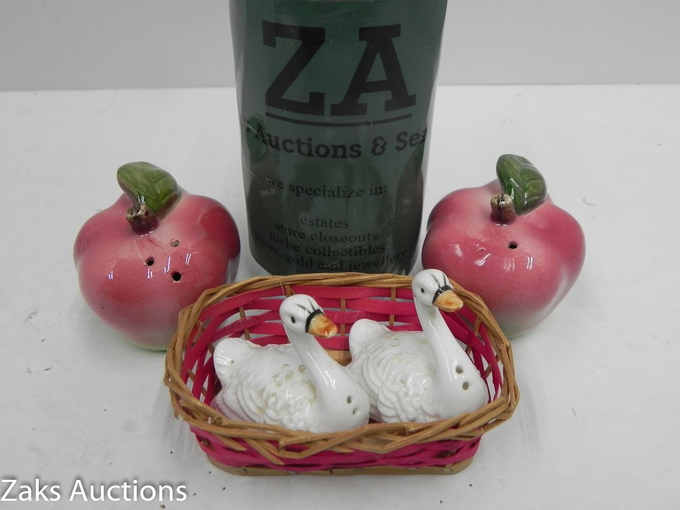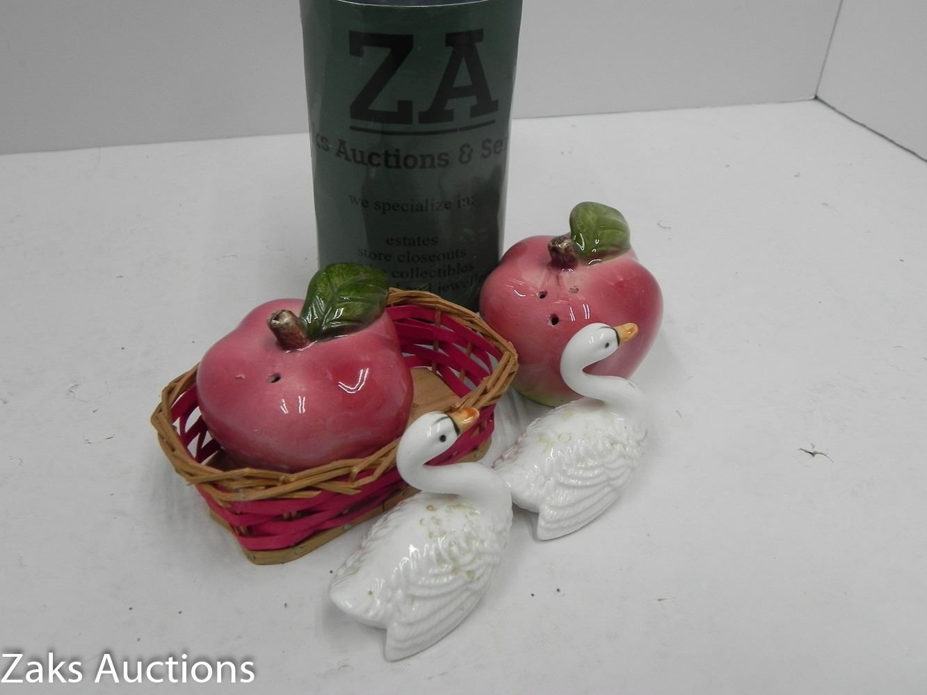 SET OF APPLES, MADE IN JAPAN - 2 SWANS IN A BASKET