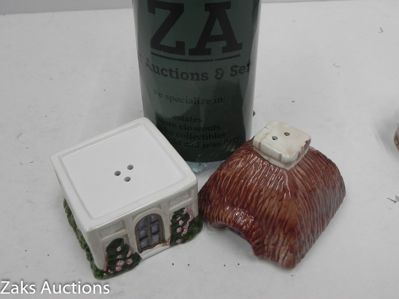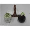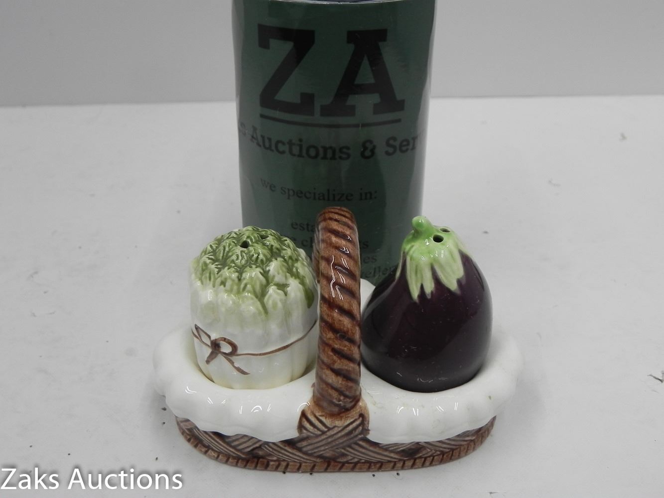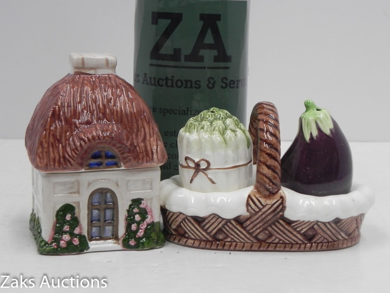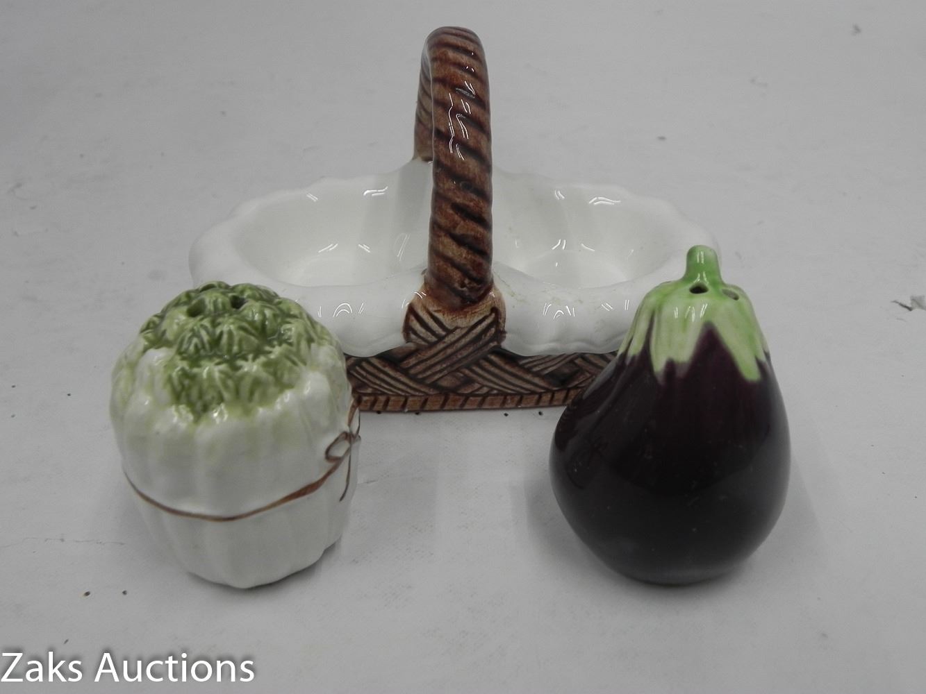 MADE IN TAIWAN - 2 PC THATCH HOUSE, MADE IN KOREA - 3 PC ASPARAGUS/EGGPLANT S/P IN BASKET