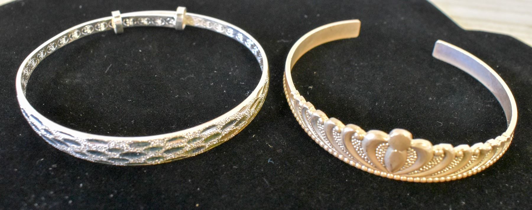 LOT OF 2 SILVER TONE BANGLE BRACELETS