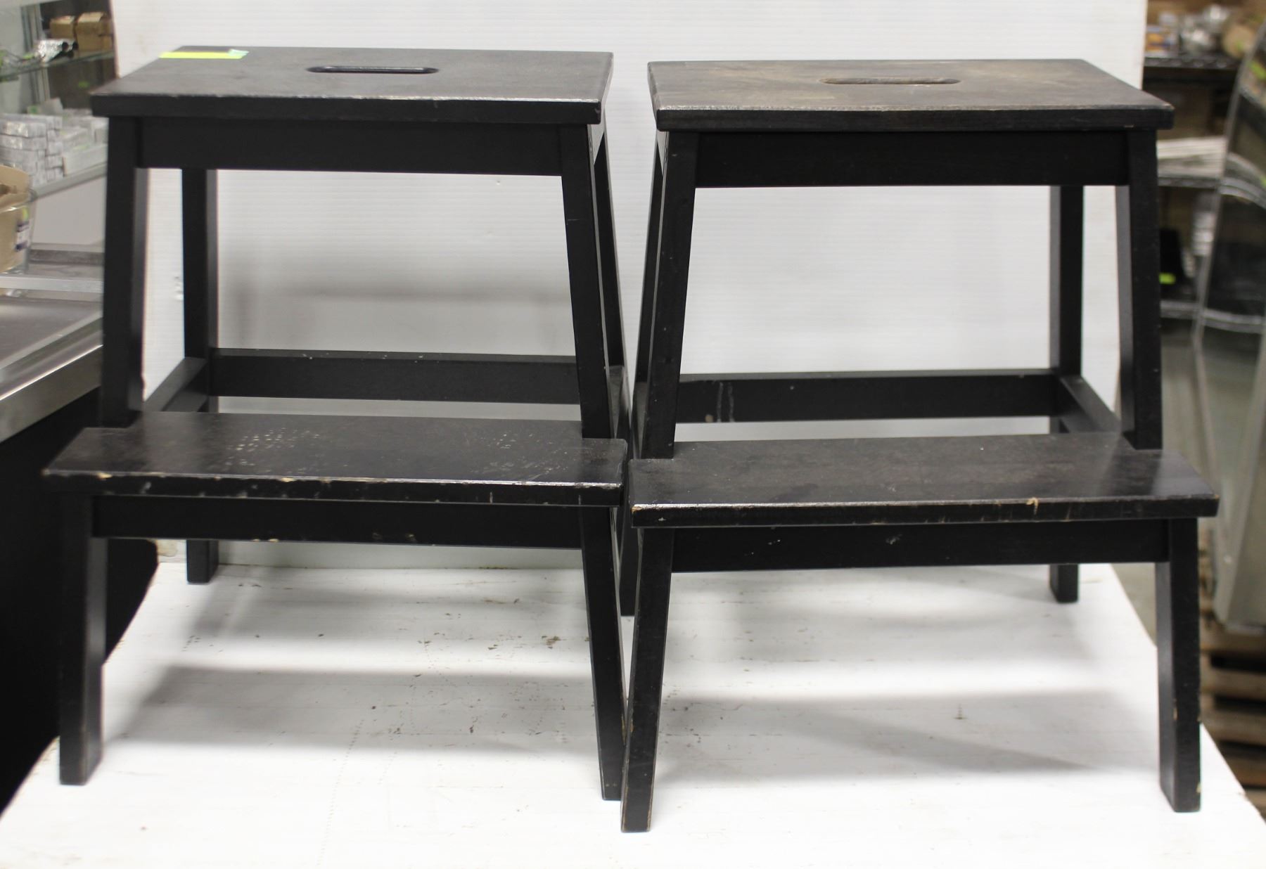 LOT OF 2 SOLID WOOD STEP STOOLS