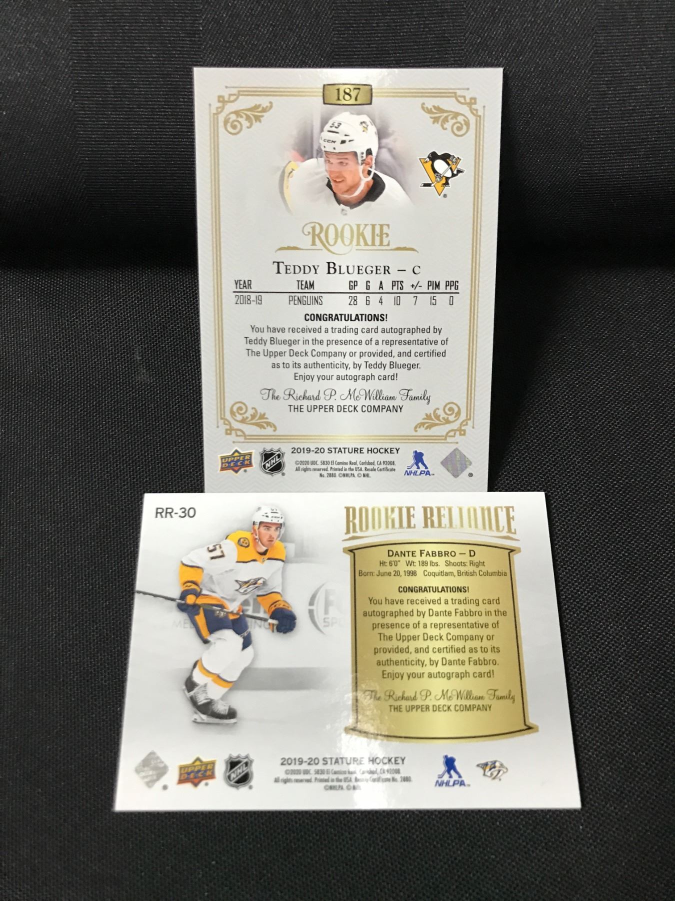 LOT OF 2 STATURE ROOKIE SIGNED HOCKEY TRADING CARDS