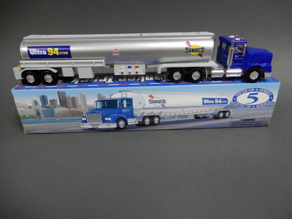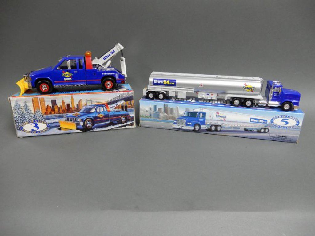LOT OF 2 SUNOCO BATTERY OPERATED TOYS WITH BOXES TOW TRUCK WITH SNOW PLOW - TALKING TANKER TRUCK LOCATION: LOWER LEFT