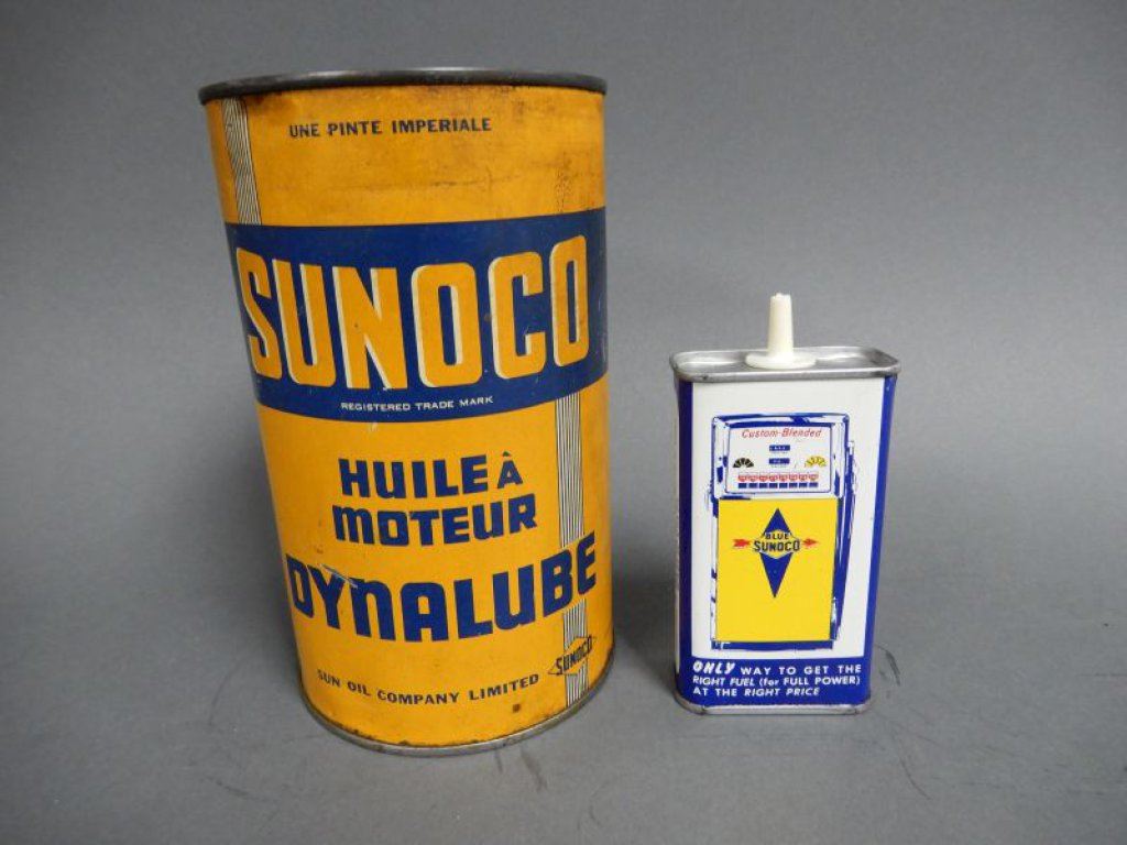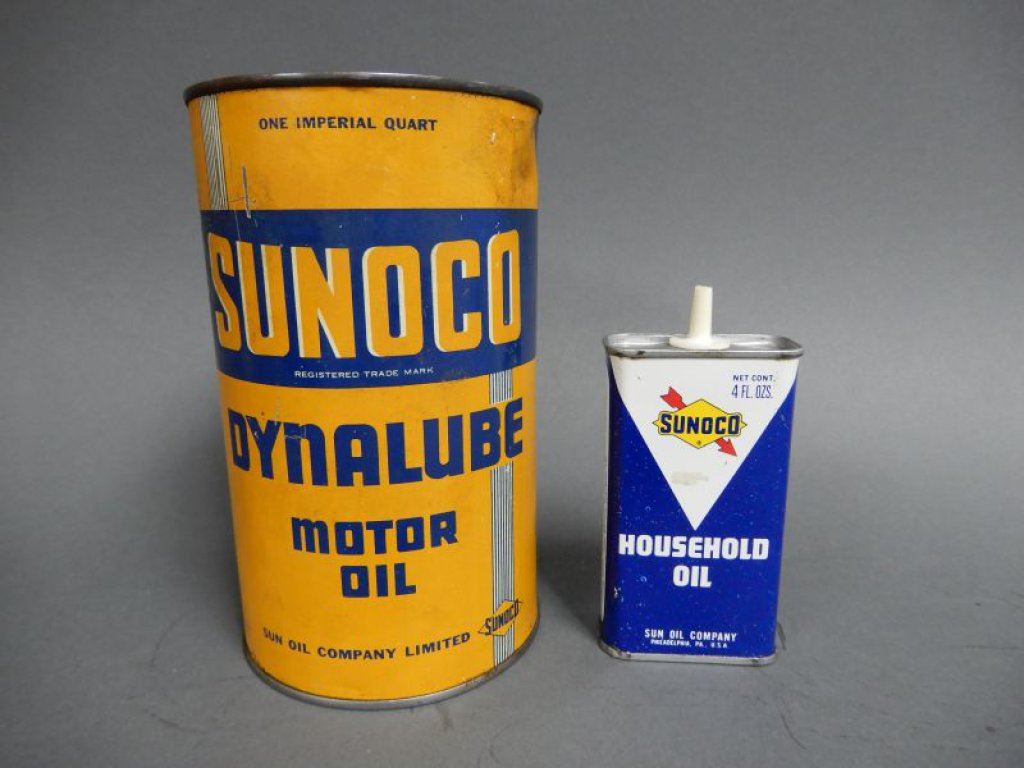 LOT OF 2 SUNOCO CANS 4 OZ HANDY OILER - DYNALUBE MOTOR OIL IMP QT LOCATION: LOWER LEFT