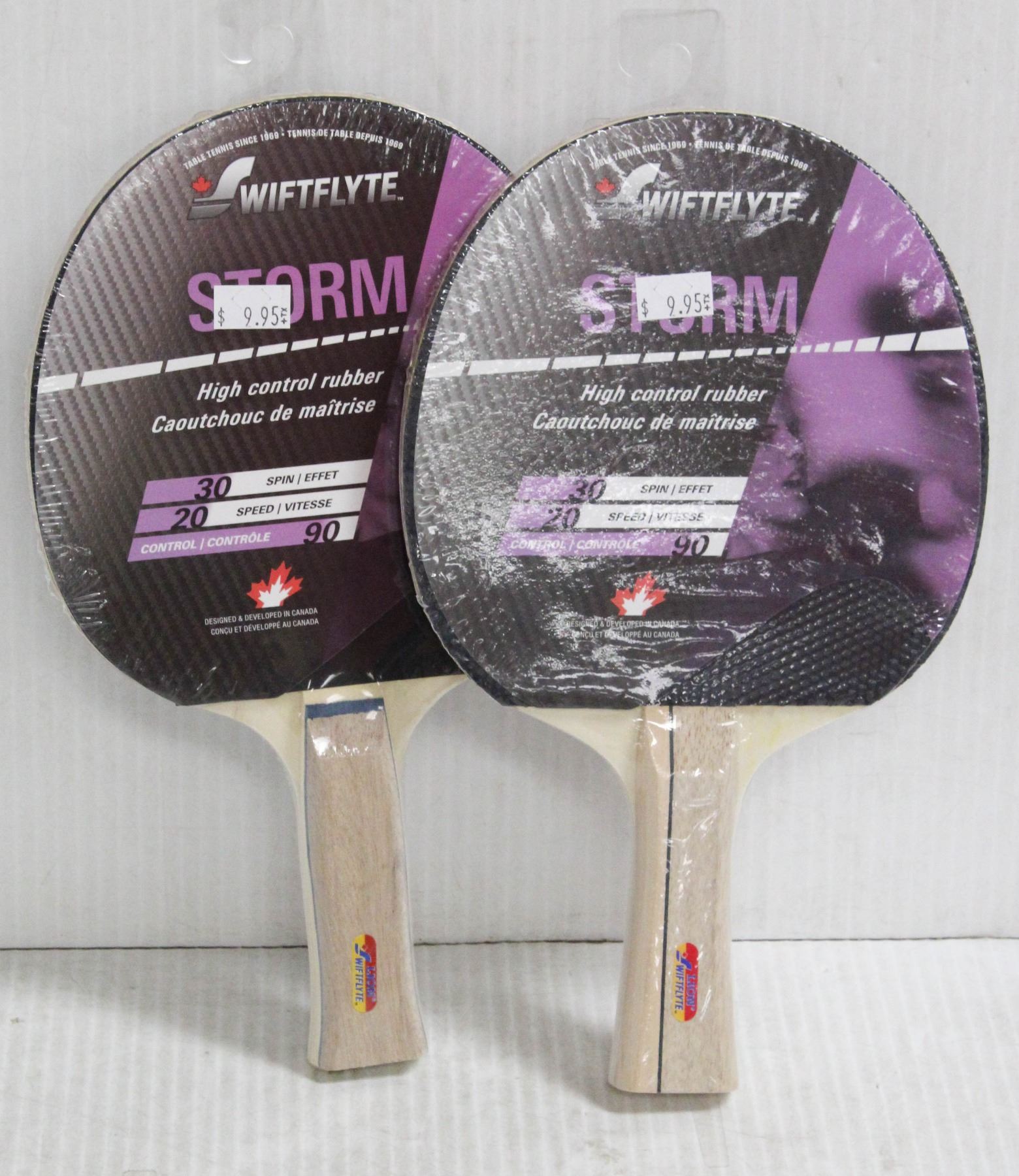 LOT OF 2 SWIFTFLYTE STORM HIGH CONTROL RUBBER PING PONG PADDLES
