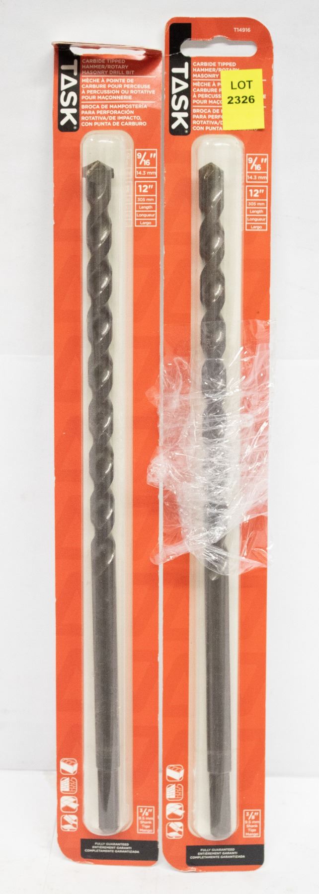 DRILL BIT. 9/16". 12" LENGTH. 3/8" HEX SHANK