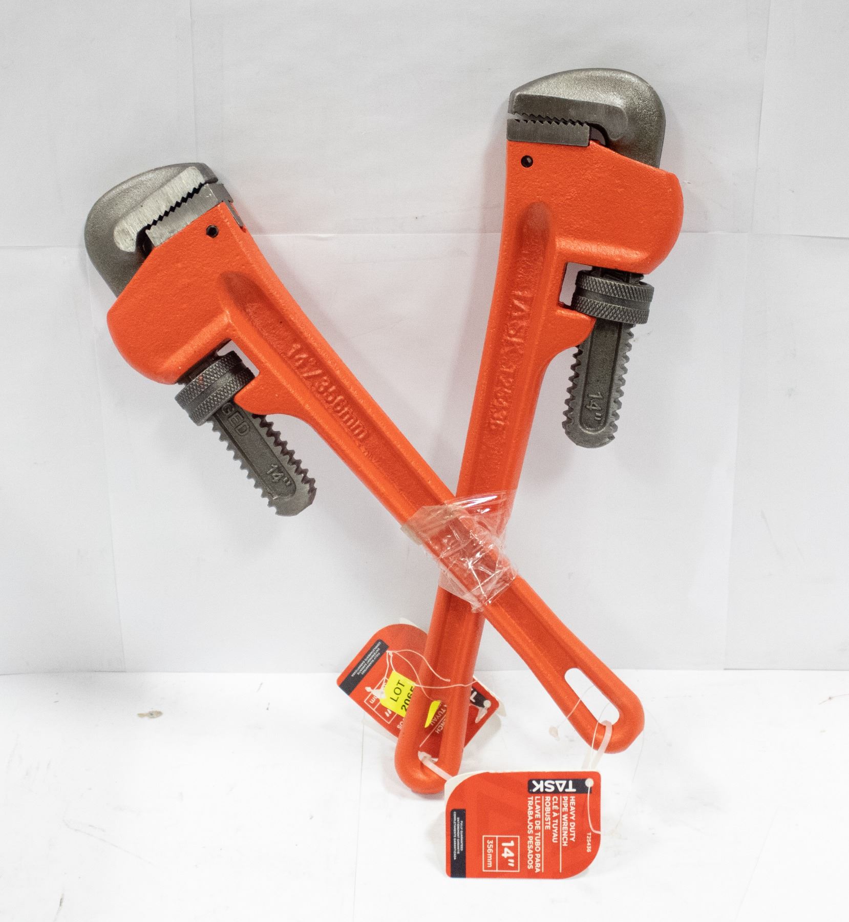 LOT OF 2 TASK HEAVY DUTY PIPE WRENCHES 14"