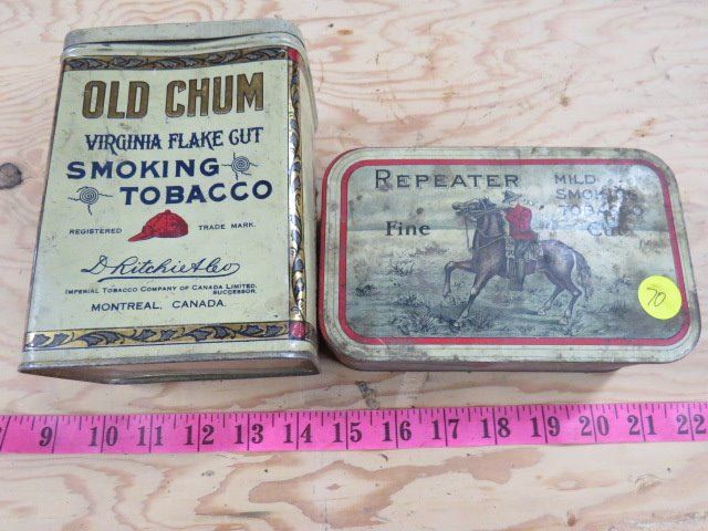 LOT OF 2 TOBACCO TINS ( OLD CHUM AND REPEATER)