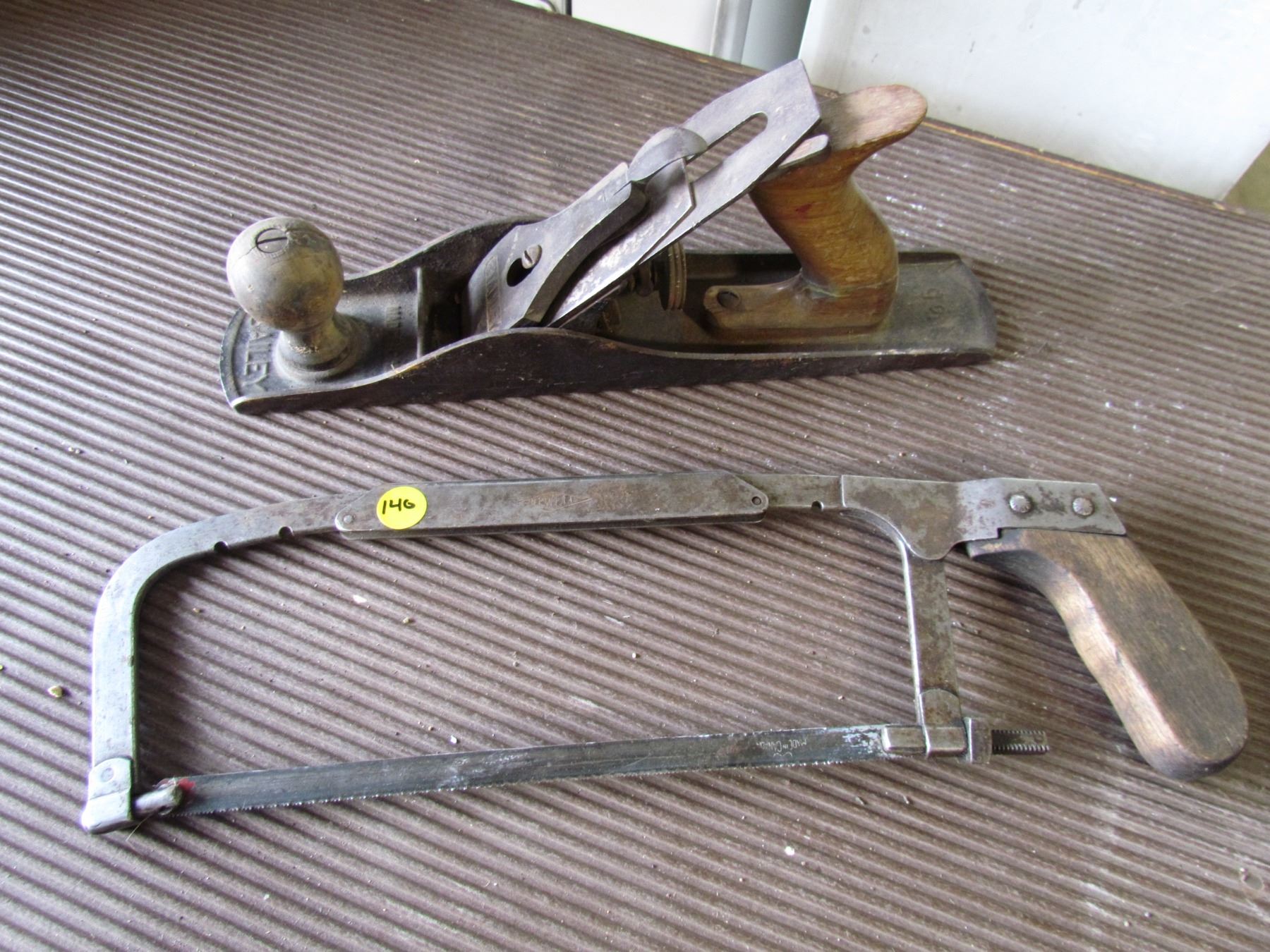 LOT OF 2 TOOLS (VINTAGE) *WOOD PLANE* (STANLEY) *#5 HACKSAW*