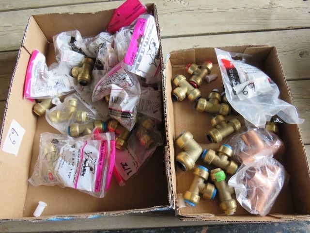 LOT OF 2 TRAYS OF BRASS CONNECTORS (1/2") *PUSH FIT*