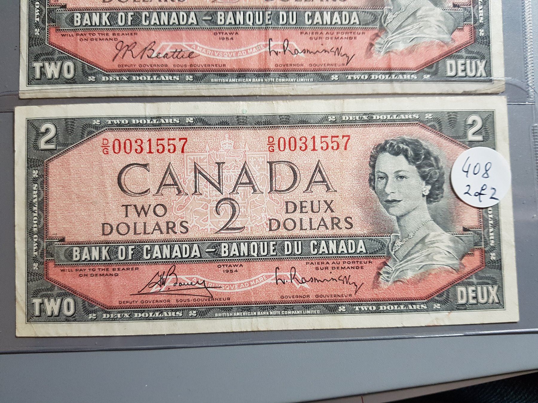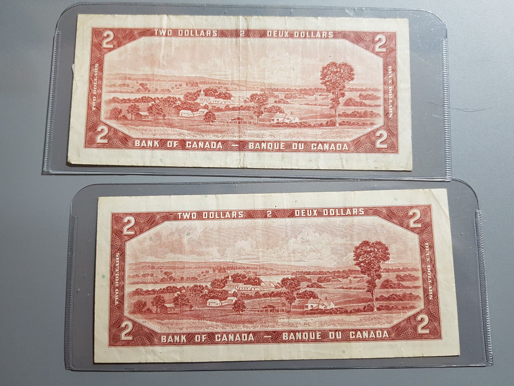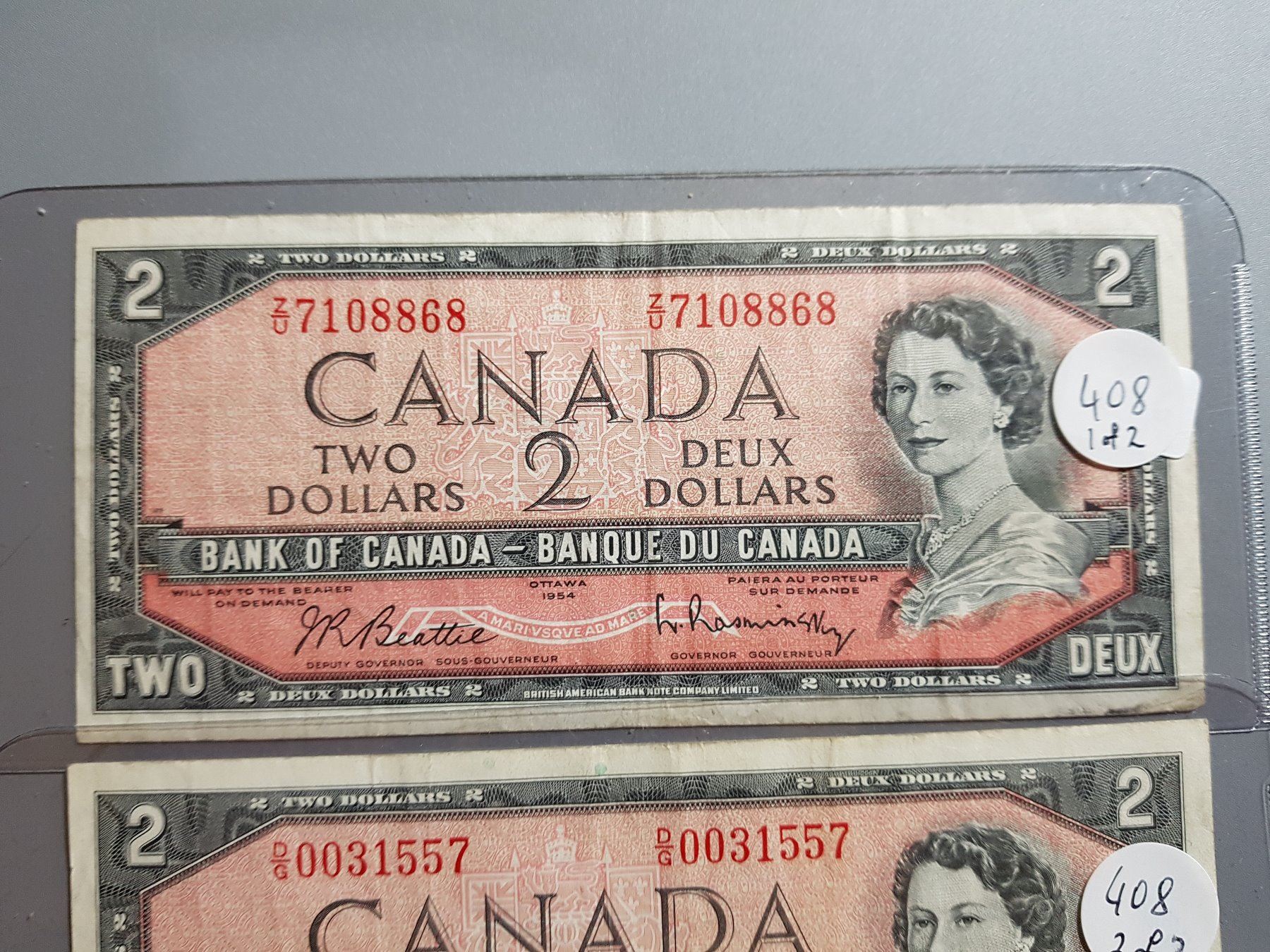 LOT OF 2-TWO DOLLAR BILLS (1954) *DIFFERENT SIGNATURES* (CANADA)