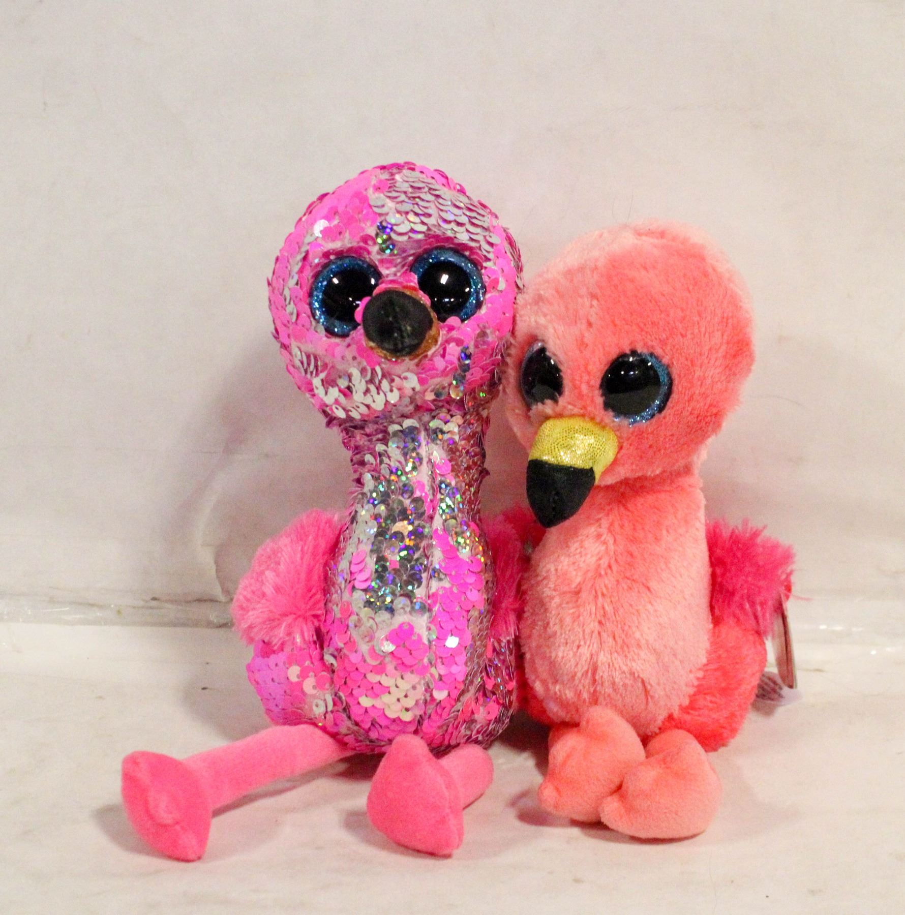 LOT OF 2 TY FLAMINGOS - 1 PINK SEQUINED