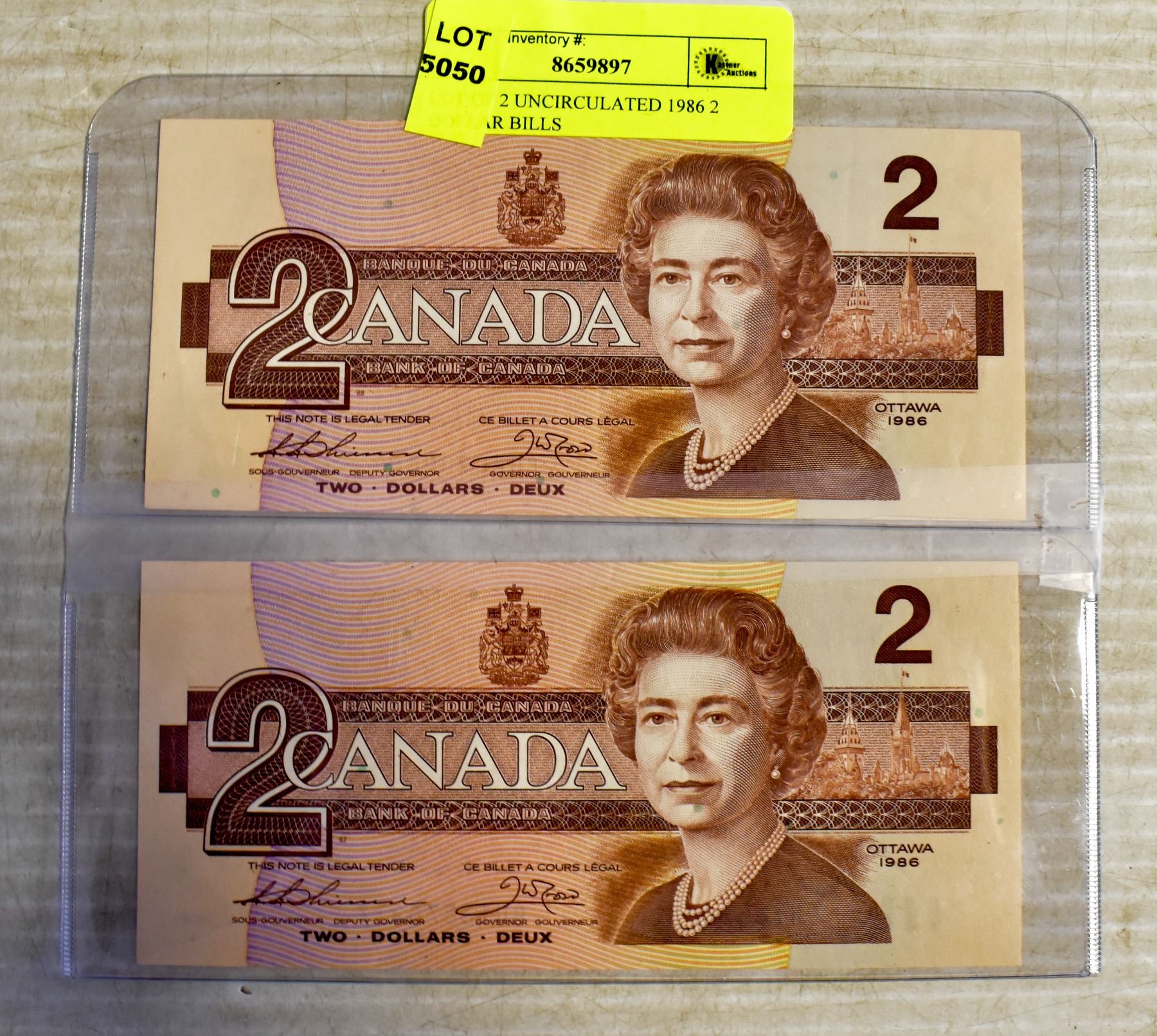 LOT OF 2 UNCIRCULATED 1986 2 DOLLAR BILLS