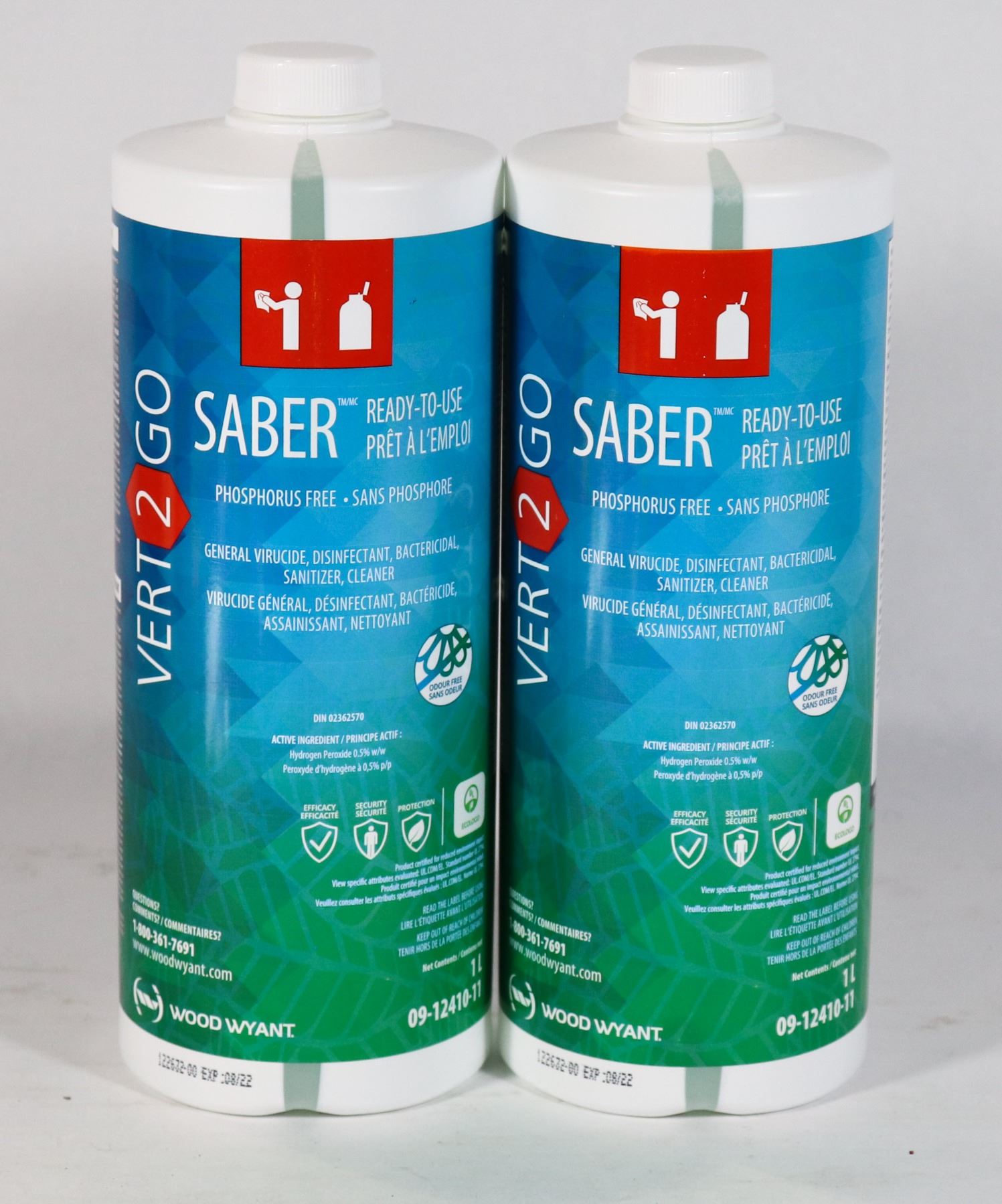 LOT OF 2 VERT2GO SANITIZER CLEANER 1L CONTAINERS