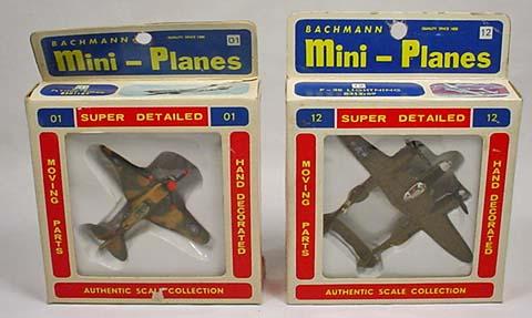LOT OF 2 VINTAGE BACHMANN MINI-PLANES IN ORIGINAL BOXES - P38 Lightning and P40 Flying Tiger