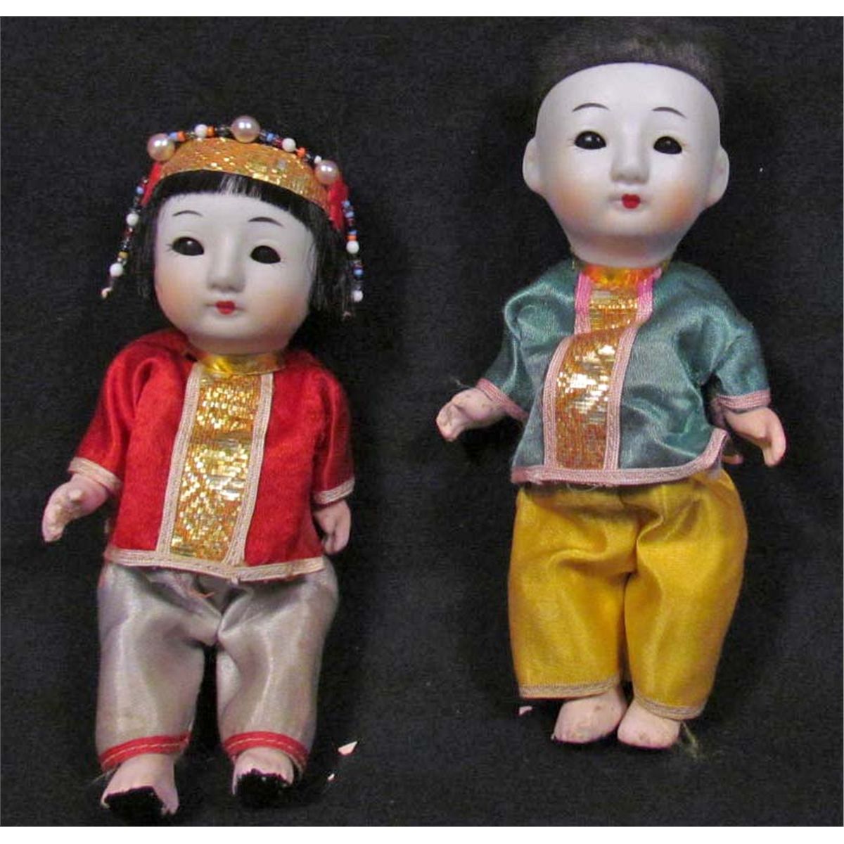 LOT OF 2 VINTAGE BISQUE ORIENTAL DOLLS