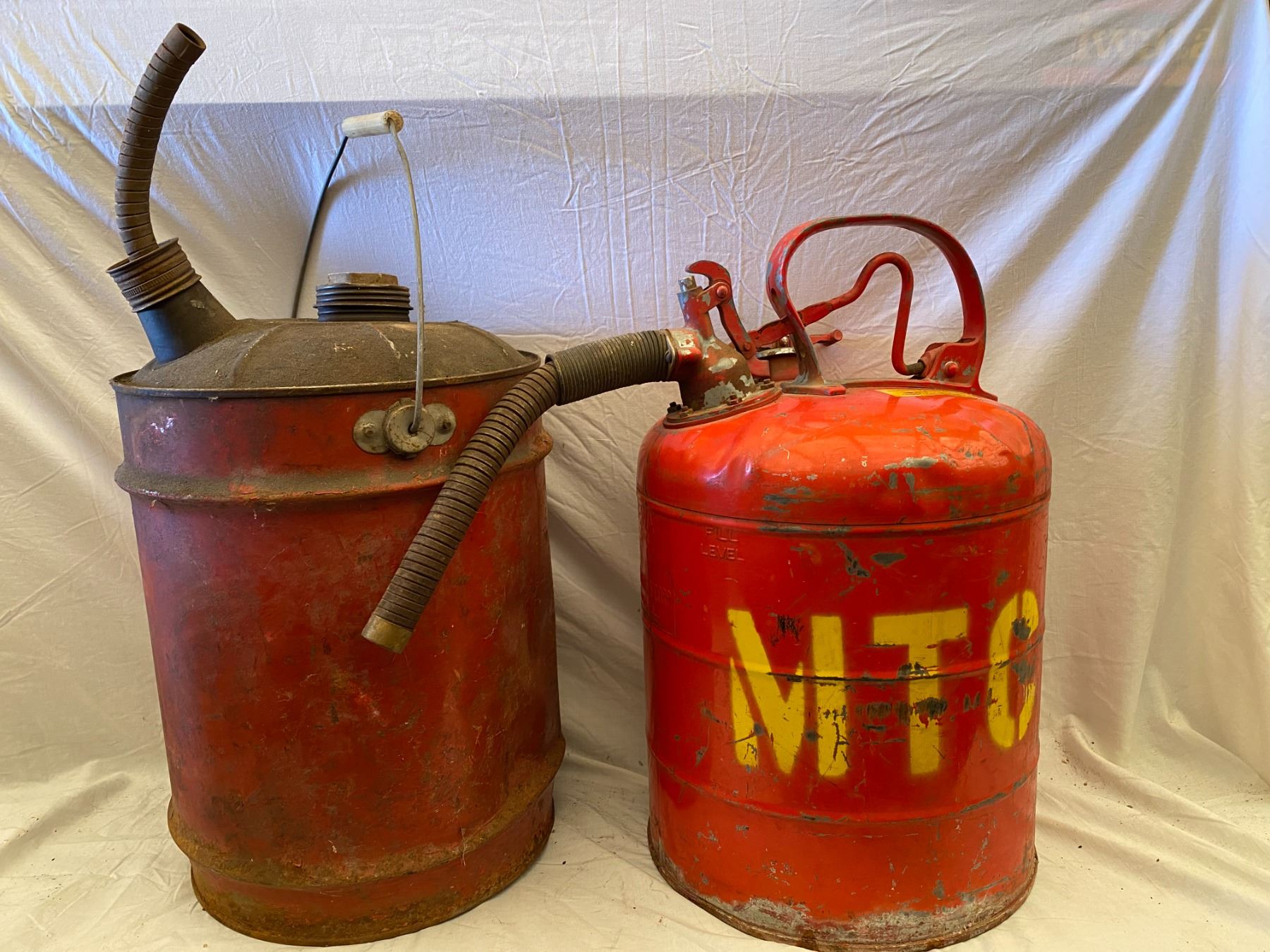 LOT OF 2 VINTAGE FUEL CANS WITH NOZZLES