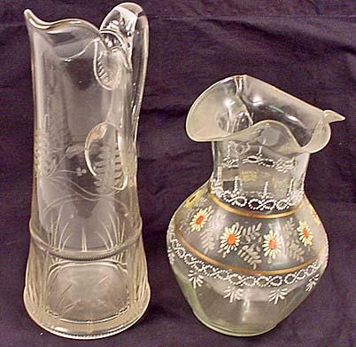 LOT OF 2 VINTAGE GLASS PITCHERS - 1 Hand Painted
