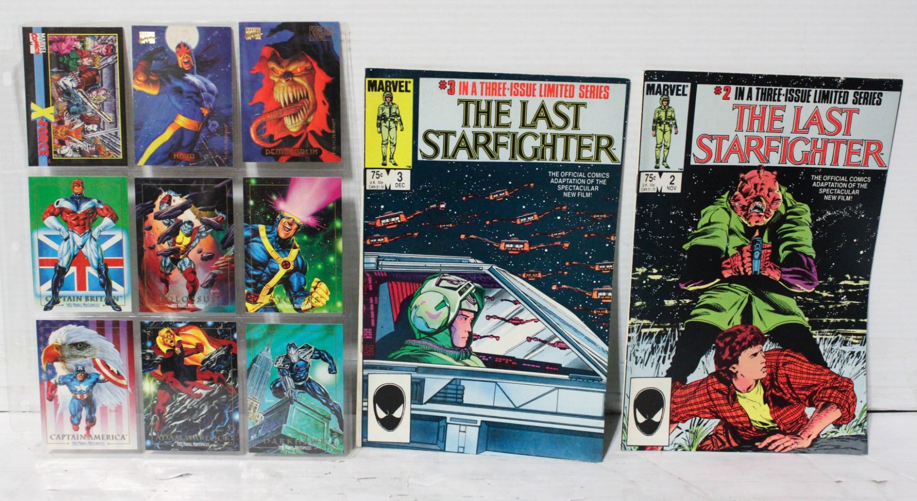 AND ONE VINTAGE SHEET OF MARVEL CARDS