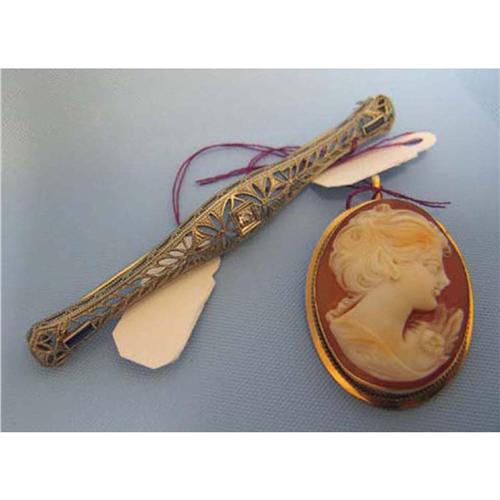 LOT OF (2) VINTAGE JEWELRY stick pin/cameo