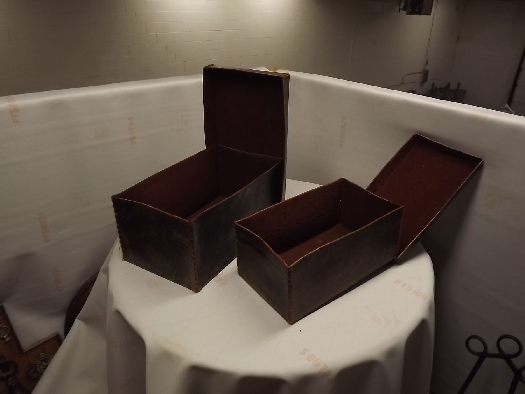 LOT OF 2 VINTAGE LEATHER STORAGE BOXES