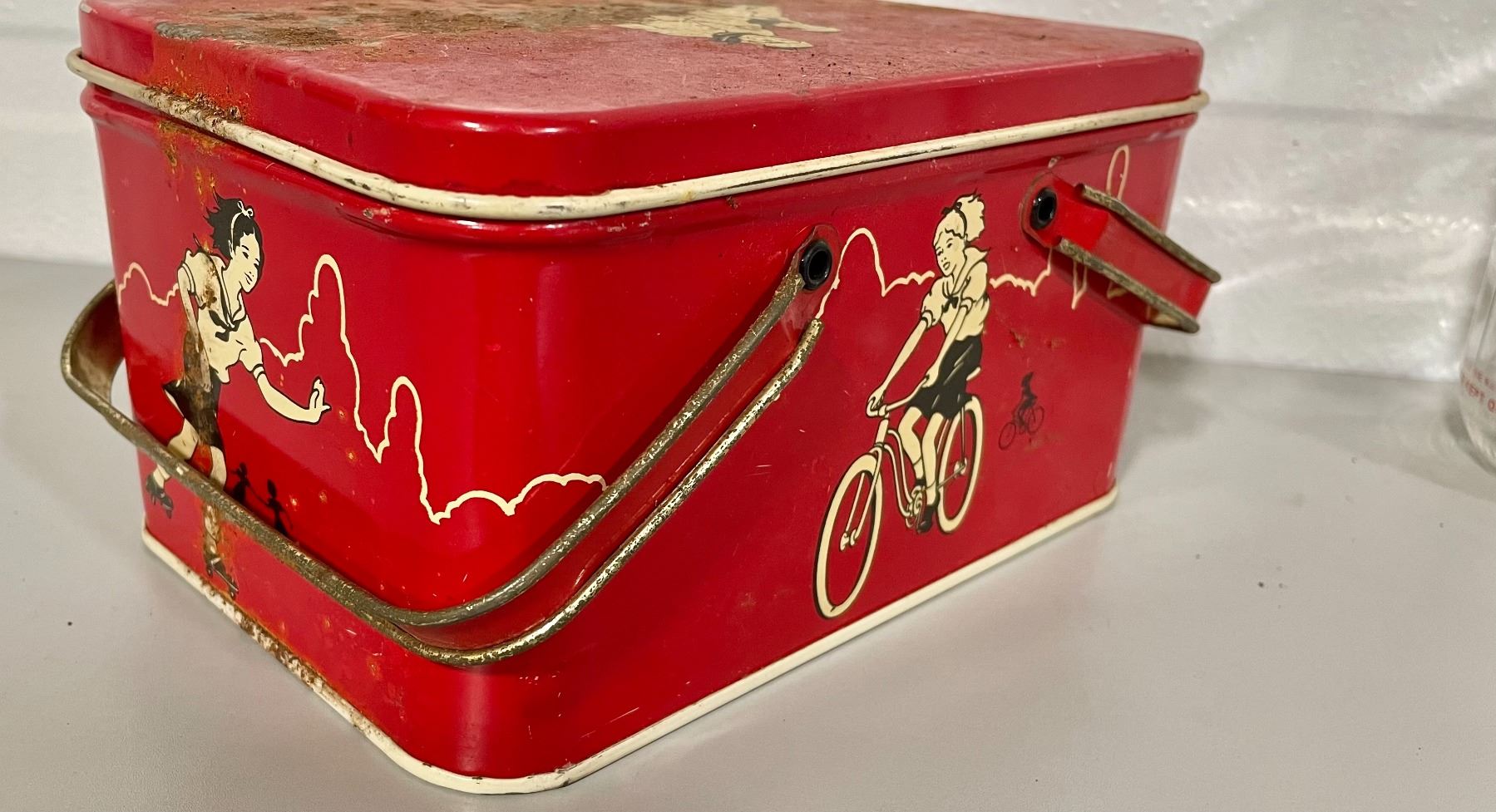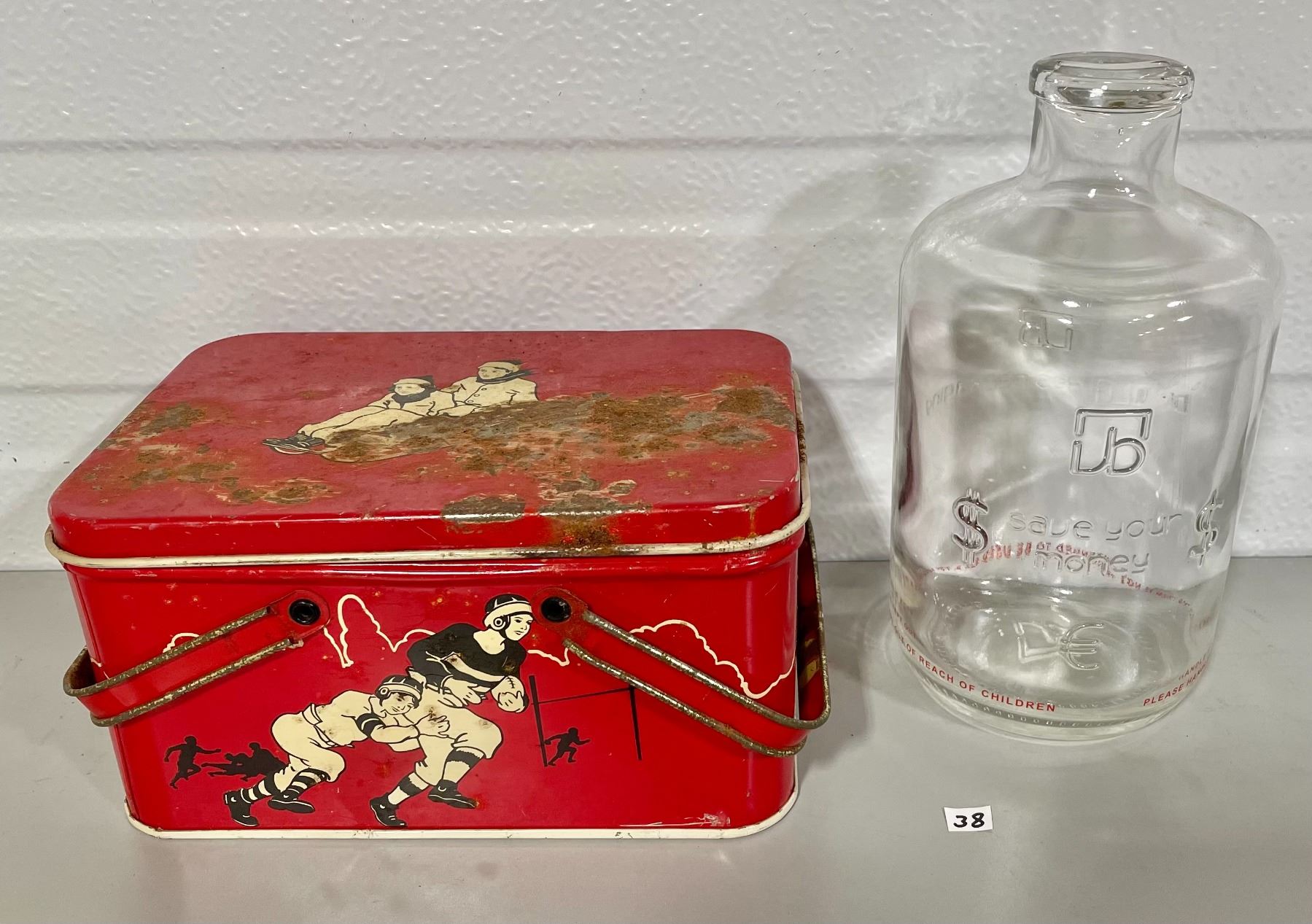 LOT OF 2: VINTAGE LUNCH PAIL AND GLASS BANK