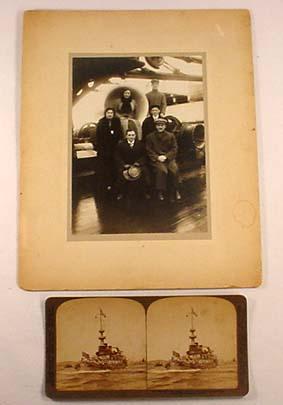 LOT OF 2 VINTAGE SHIP IMAGES - LARGE PHOTO AND STEREOVIEW CARD - Oregon is the Ship, Photo is People on a Ship