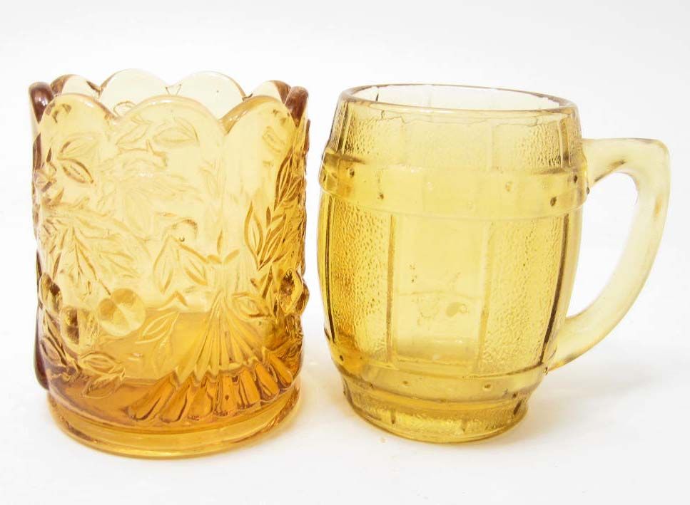 LOT OF 2 VINTAGE YELLOW GLASS TOOTHPICK HOLDERS
