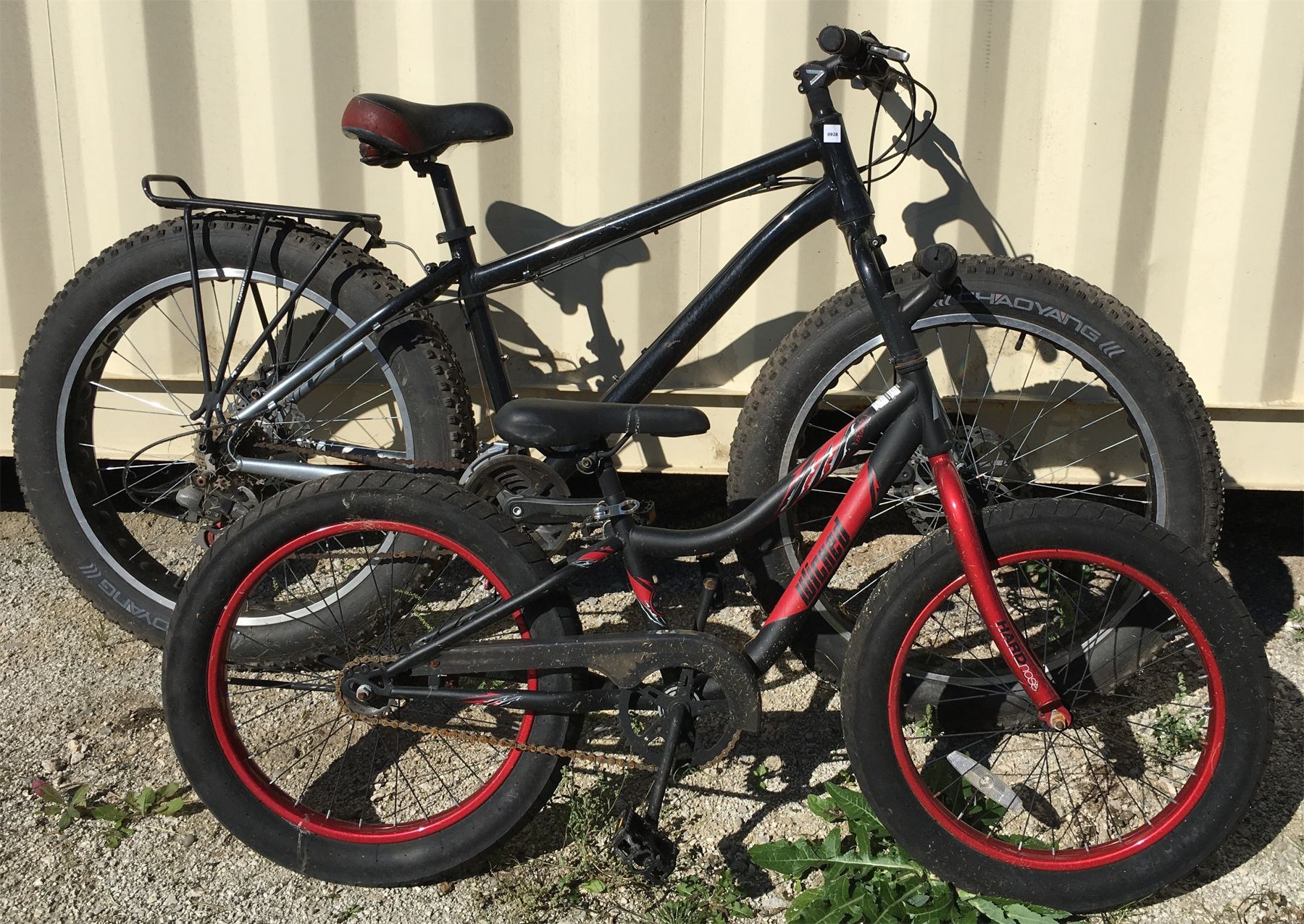NOTE: ADULT BIKE 26in TIRE IS 4in WIDE. NEEDS NEW GRIPS. CHILDS BIKE 20in TIRE IS 3in WIDE.