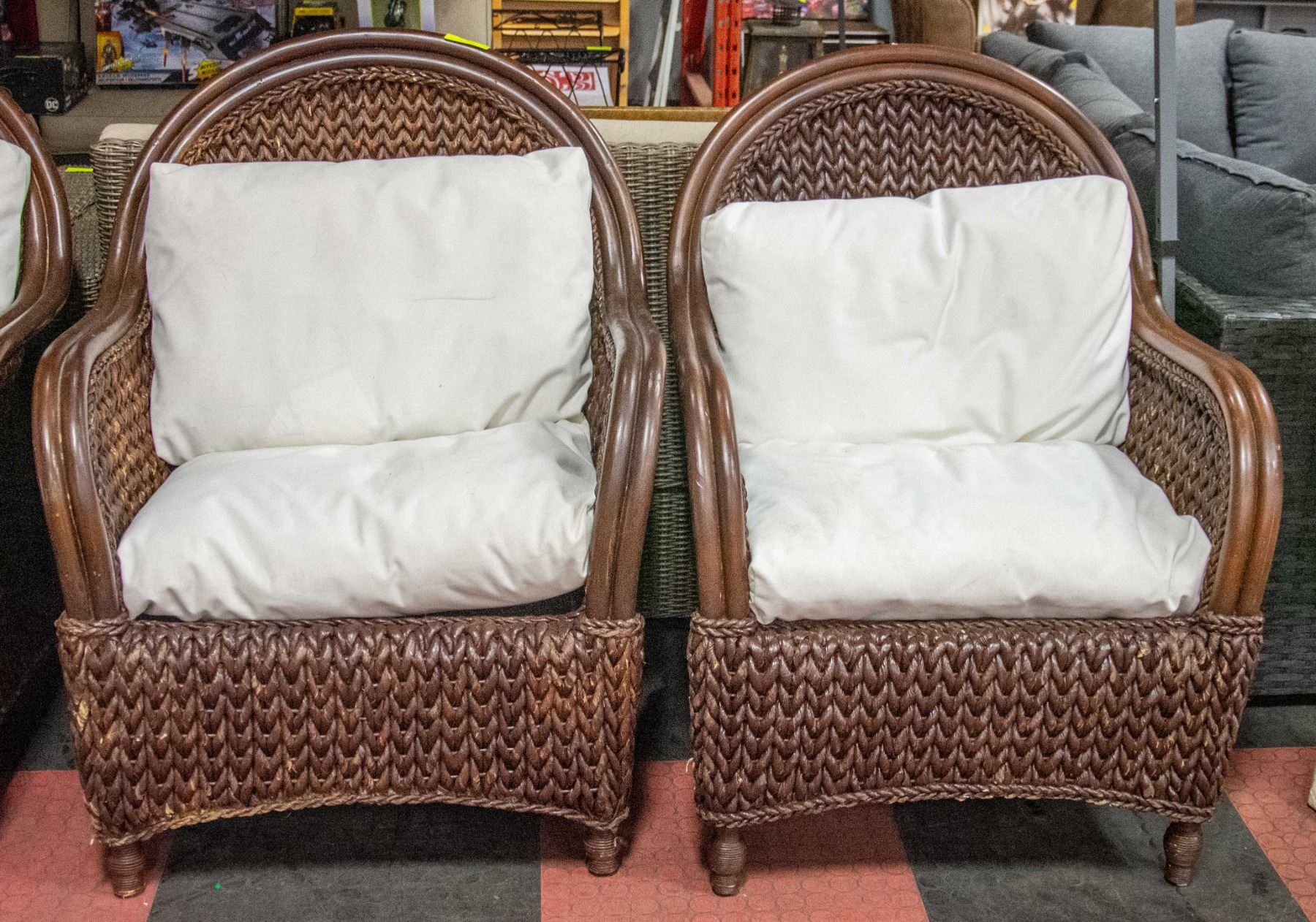 LOT OF 2 WOOD RATTAN STYLE PATIO CHAIRS