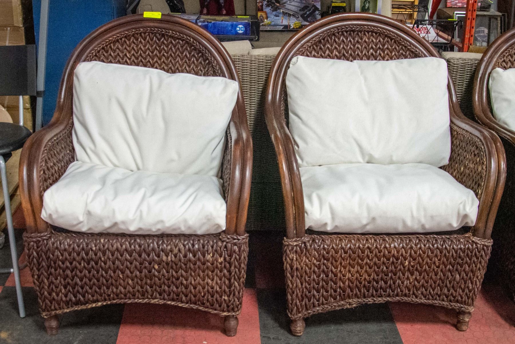LOT OF 2 WOOD RATTAN STYLE PATIO CHAIRS