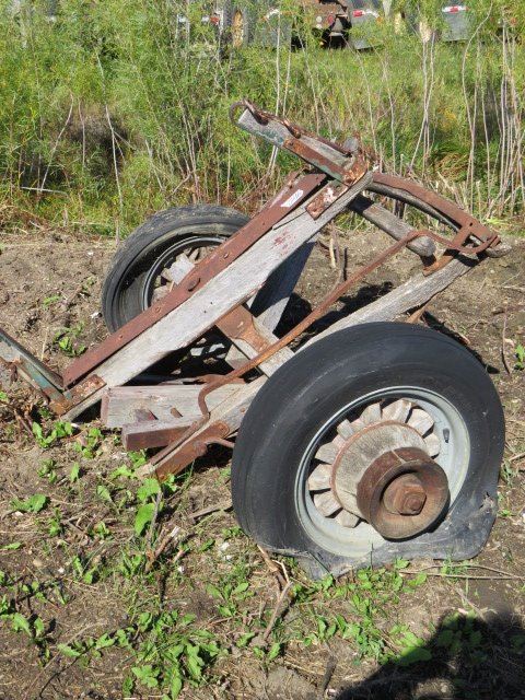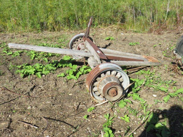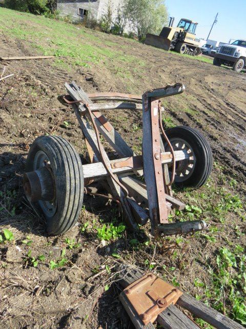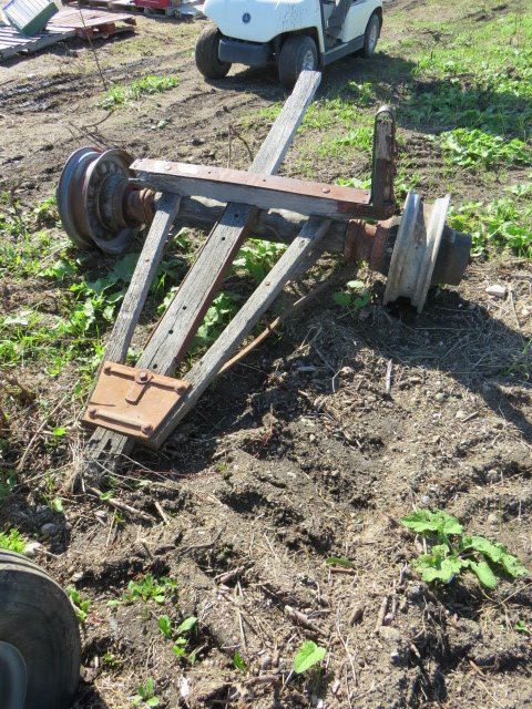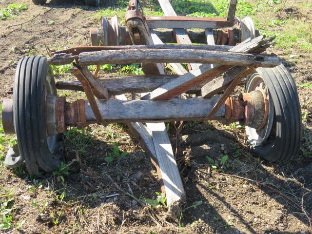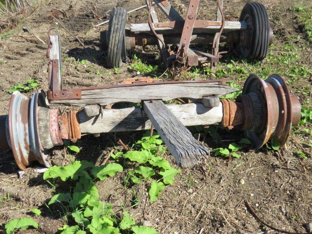 LOT OF 2 WOODEN AXLES COMPLETE WITH WOOD SPOKE RIMS