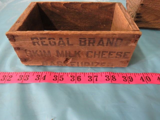 LOT OF 2 WOODEN BOXES (REGAL BRAND SKIM MILK CHEESE PASTURIZED)