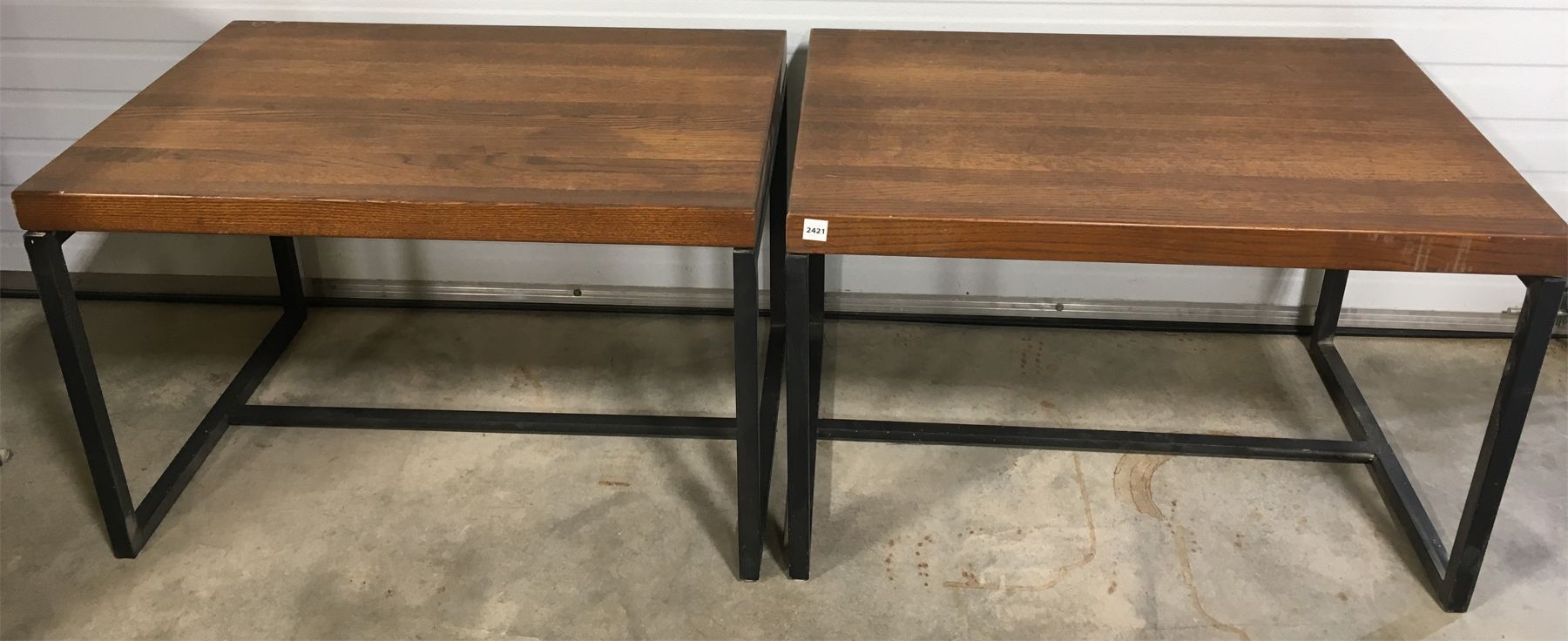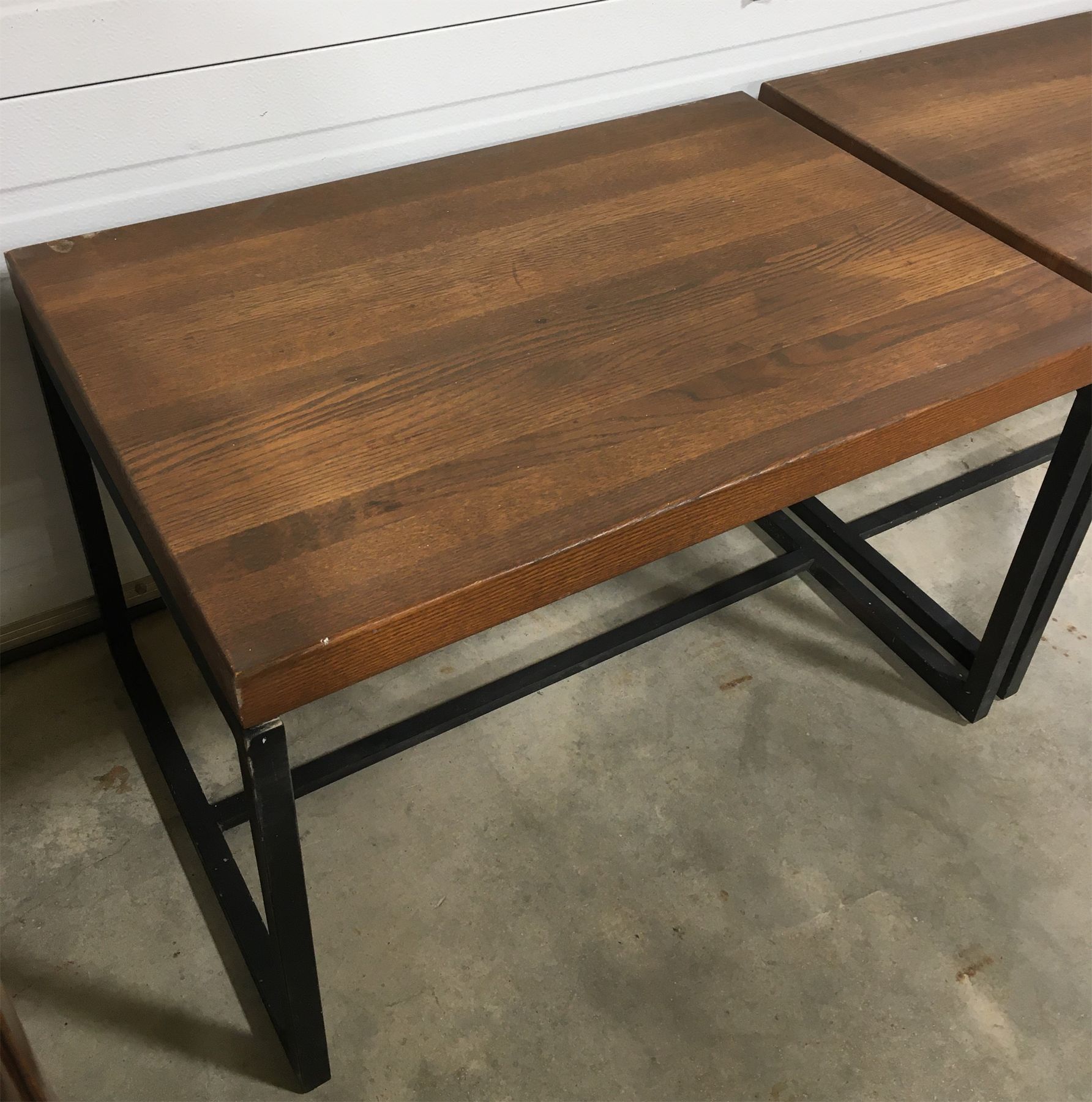 NOTE: HEAVY WOODEN SLABS ON METAL LEGS