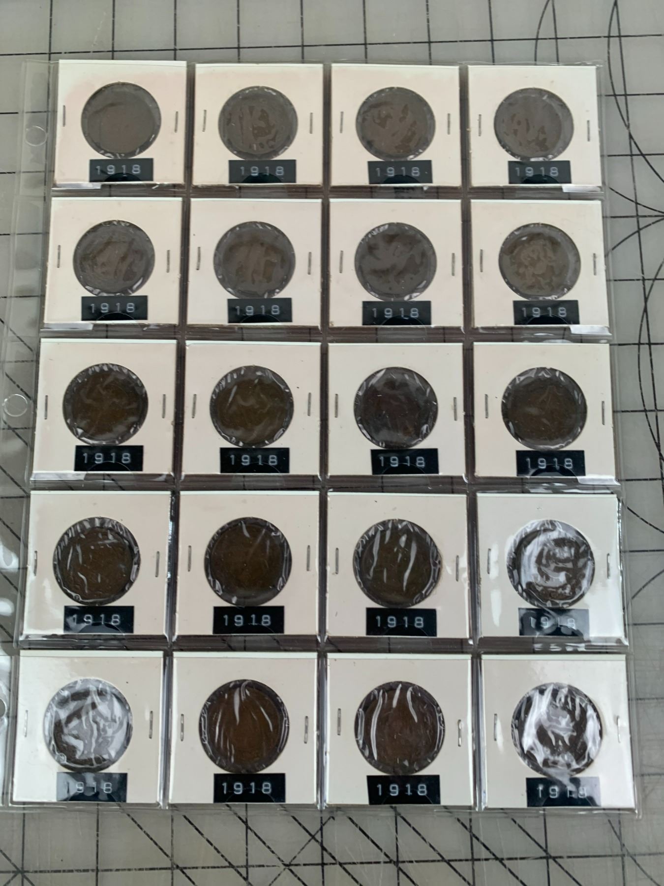 LOT OF 20 1918 CANADA LARGE CENT PENNIES