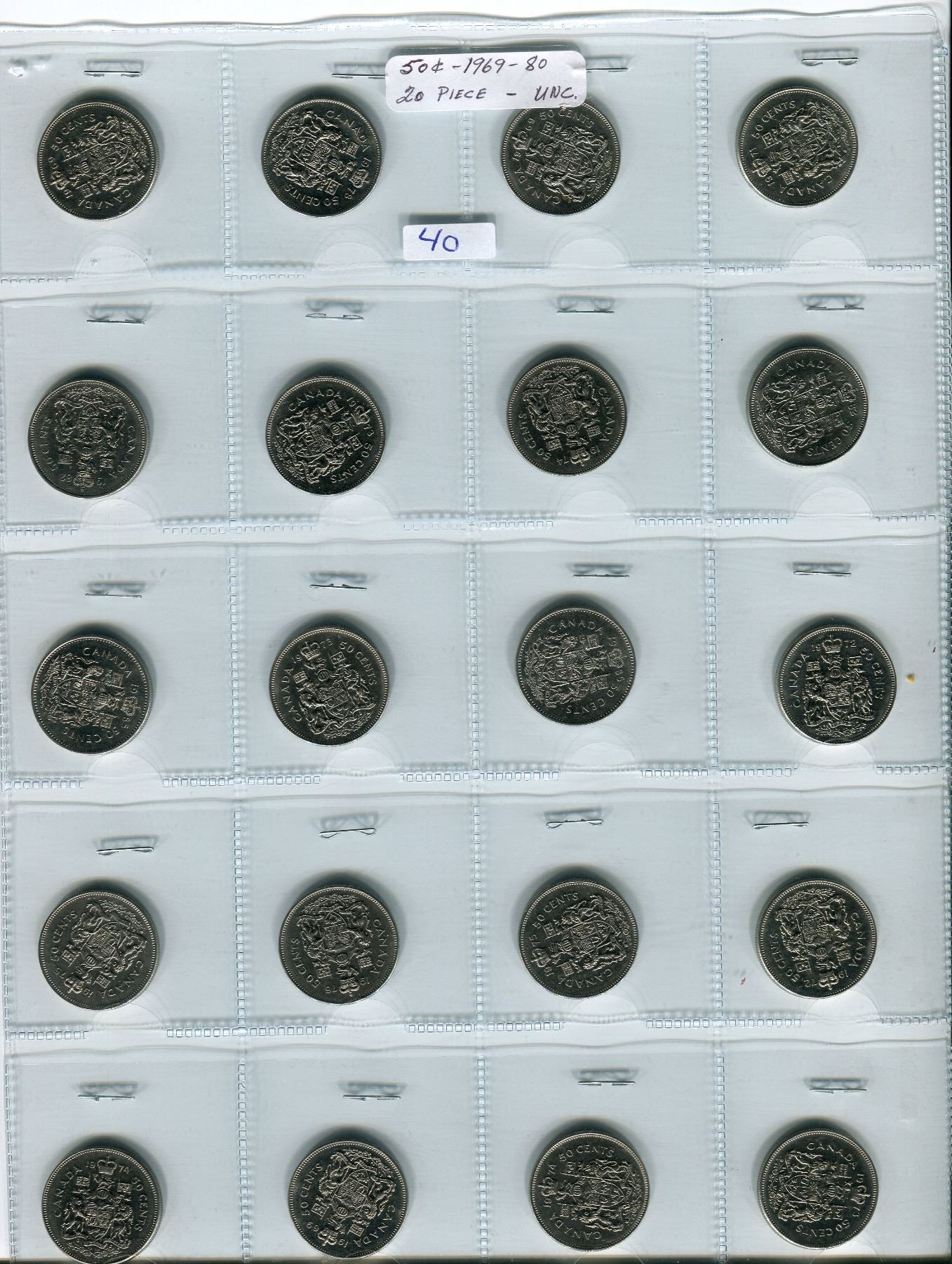 LOT OF 20 50 CENT PIECES (1969 TO 1980)