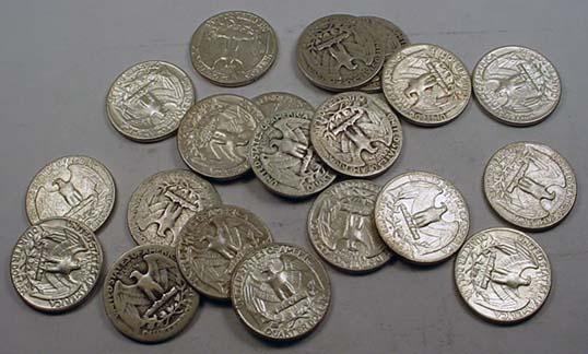 LOT OF 20 90% SILVER WASHINGTON QUARTERS - 1964 OR EARLIER - UNSEARCHED!!