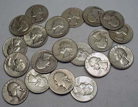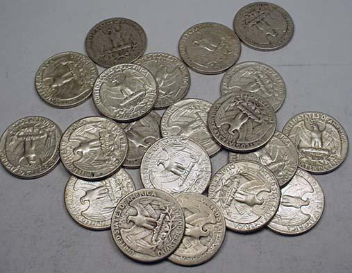 LOT OF 20 90% SILVER WASHINGTON QUARTERS - 1964 OR EARLIER - UNSEARCHED!!