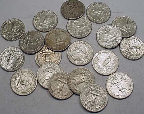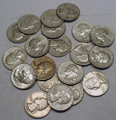 LOT OF 20 90% SILVER WASHINGTON QUARTERS - 1964 OR EARLIER - UNSEARCHED!!