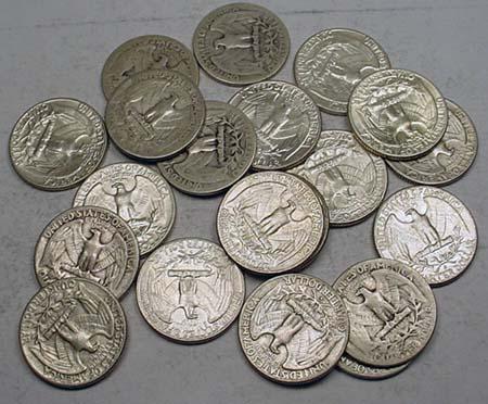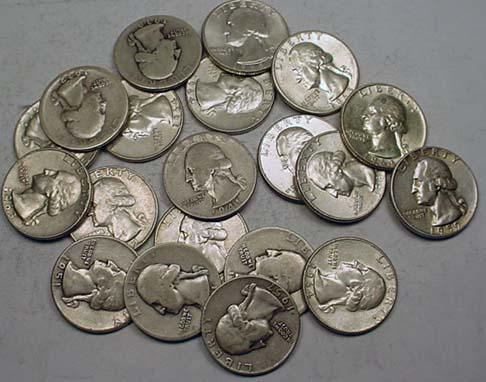 LOT OF 20 90% SILVER WASHINGTON QUARTERS - 1964 OR EARLIER - UNSEARCHED!!