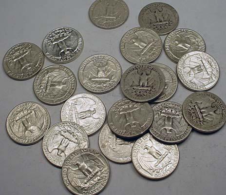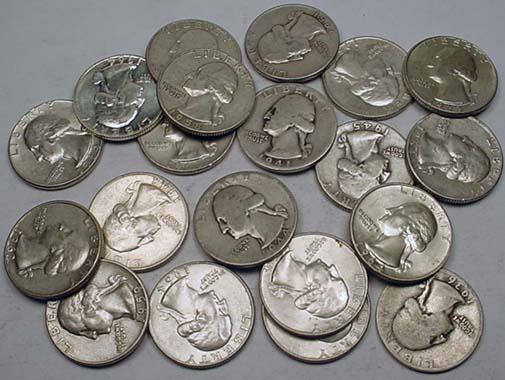 LOT OF 20 90% SILVER WASHINGTON QUARTERS - 1964 OR EARLIER - UNSEARCHED!!