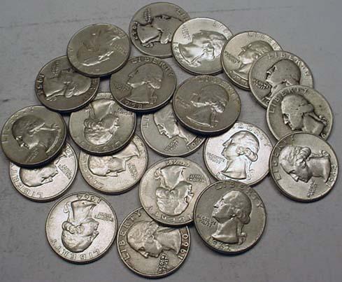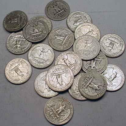 LOT OF 20 90% SILVER WASHINGTON QUARTERS - 1964 OR EARLIER - UNSEARCHED!!